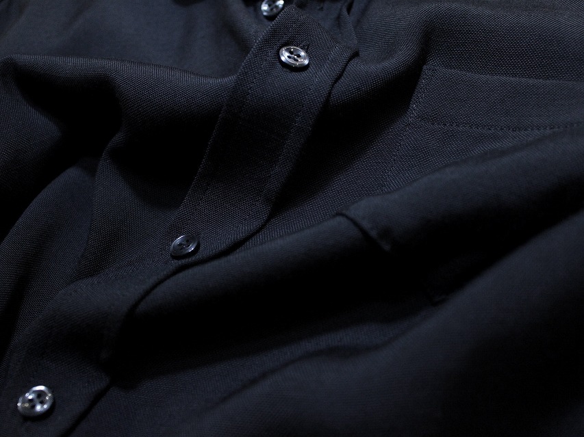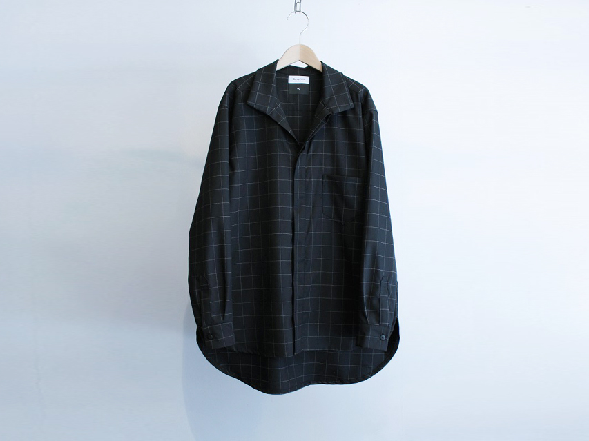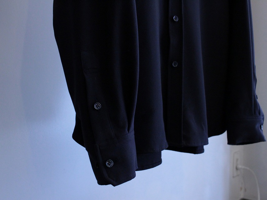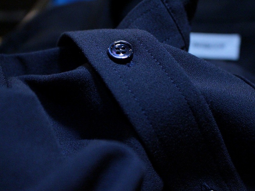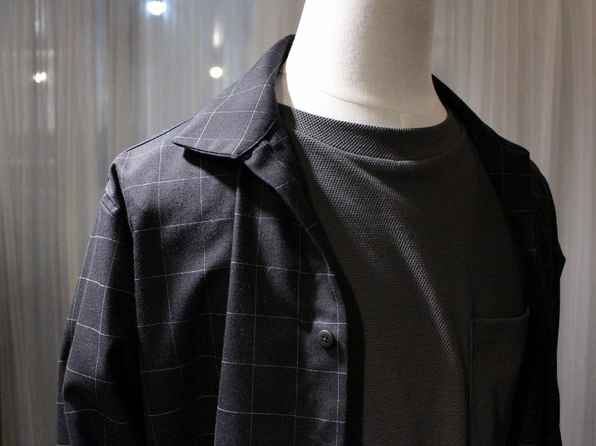 シャツらしい布帛生地よりもジョーゼット、ニットタック、ウールサキソニーツイルなど、通常あまりシャツに使われないものが目立ちますが、落ち感による着姿、シルエットの良さや鮮度ある雰囲気に表現されていると考えております。