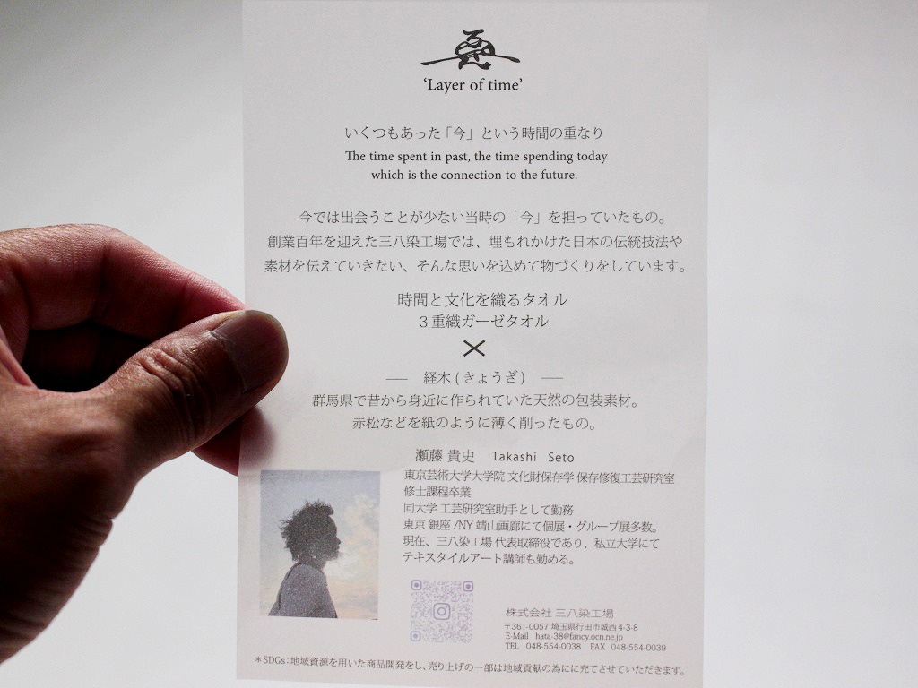 アーティスト/美術大学非常勤講師の瀬藤貴史氏が今年初めのニューヨーク展にて発表した作品のデザインを基に製作した3重織ガーゼタオル。