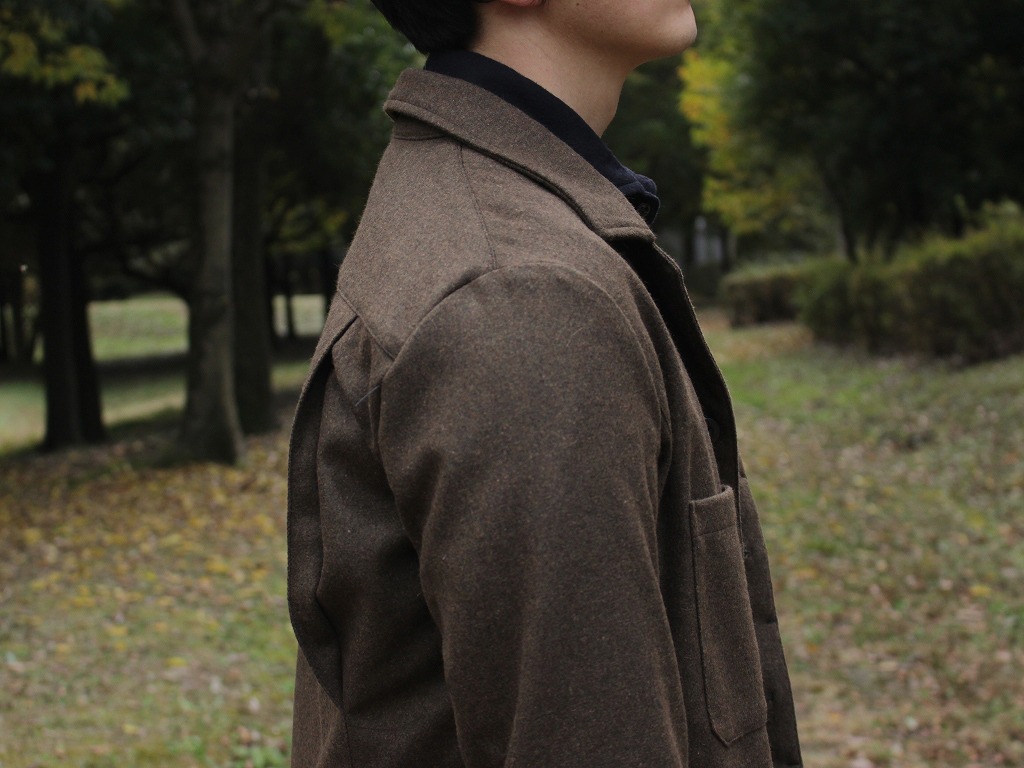 混紡ウールを通常よりも高密度になるように縮絨された事により光沢まで有するメルトン。