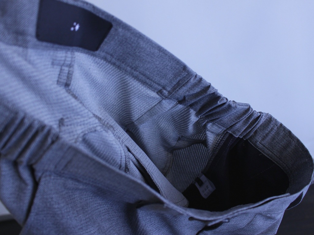 スラックスのように見えますが、ウール組成が超繊細パターンで特殊プリントされた生地です。