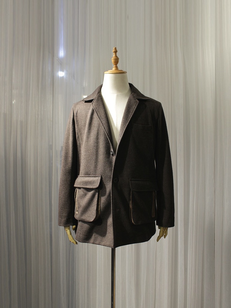 コートを基にカバーオール丈にして襟をラペル風にアレンジしてジャケットに寄せたデザインのジャーナリストジャケット。