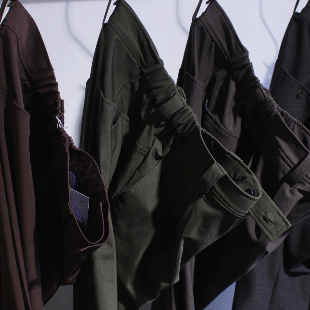 普段はそれぞれ単独で使用したとして、合わせた時に互いに色落ちなどによる経年変化のギャップが無いよう耐久性を見据えた生地セレクトです。表面堅牢度が高く摩擦などに強く、POLYESTER組成により色落ちなどにも強い生地です。