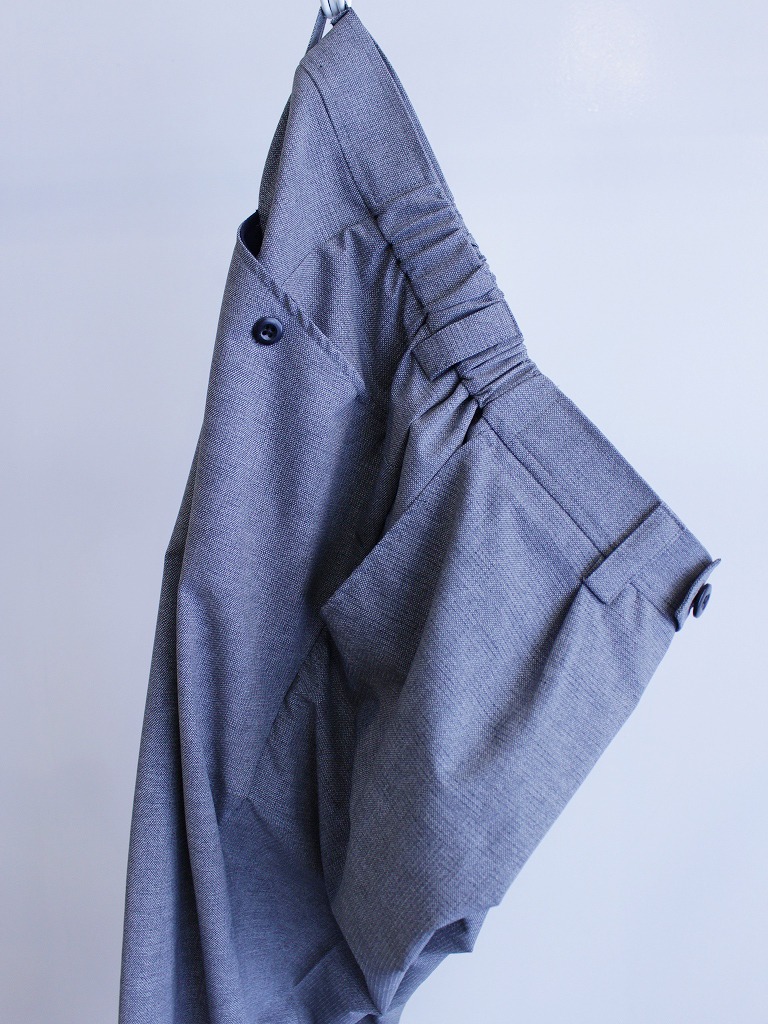 モールスキンのボトムは非常に大人っぽくオシャレ。特徴もしわになりにくく、シルエットや立体感の表現力が高いので、ワイドシャーリングトラウザースにも良いと思います。