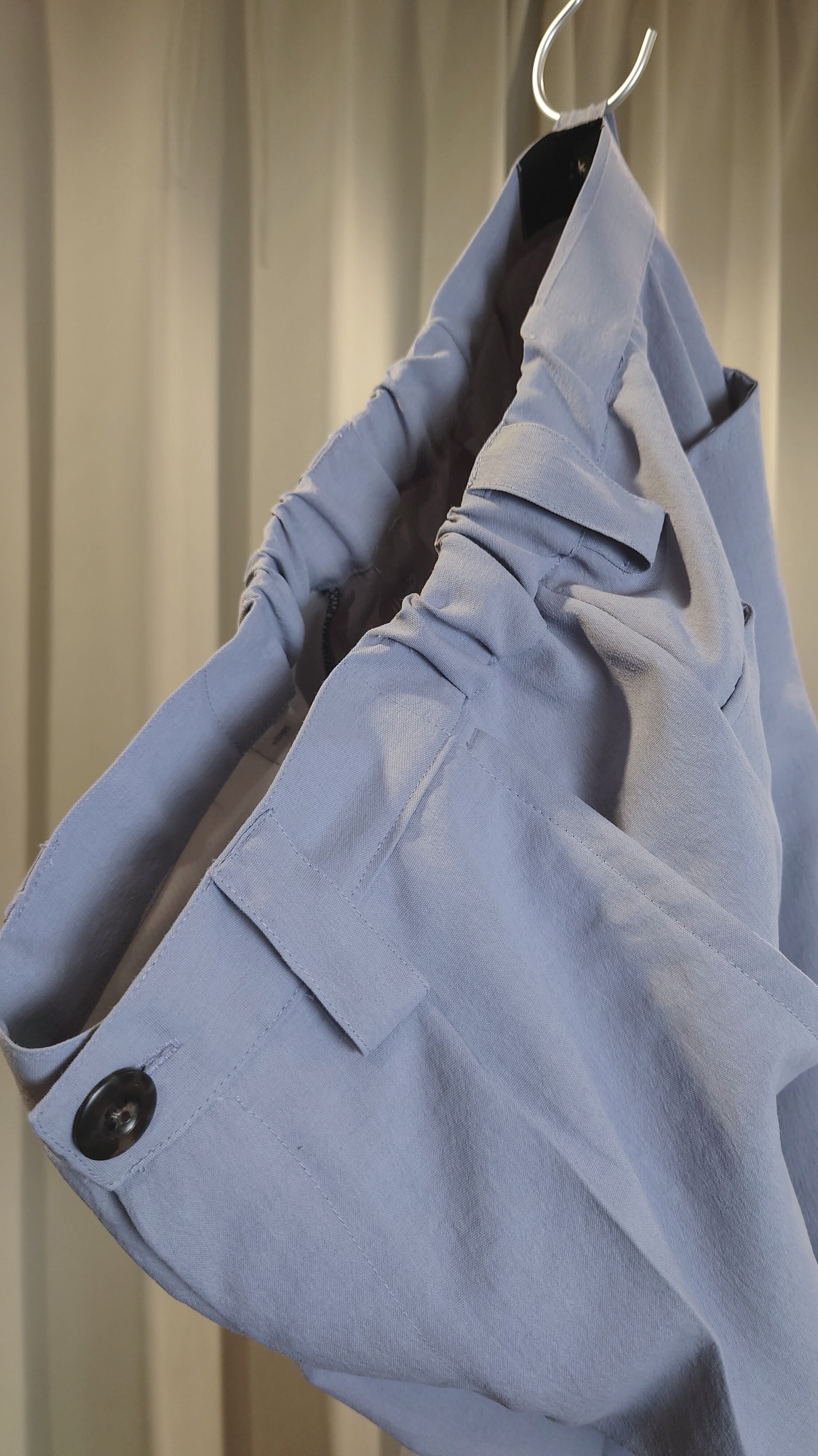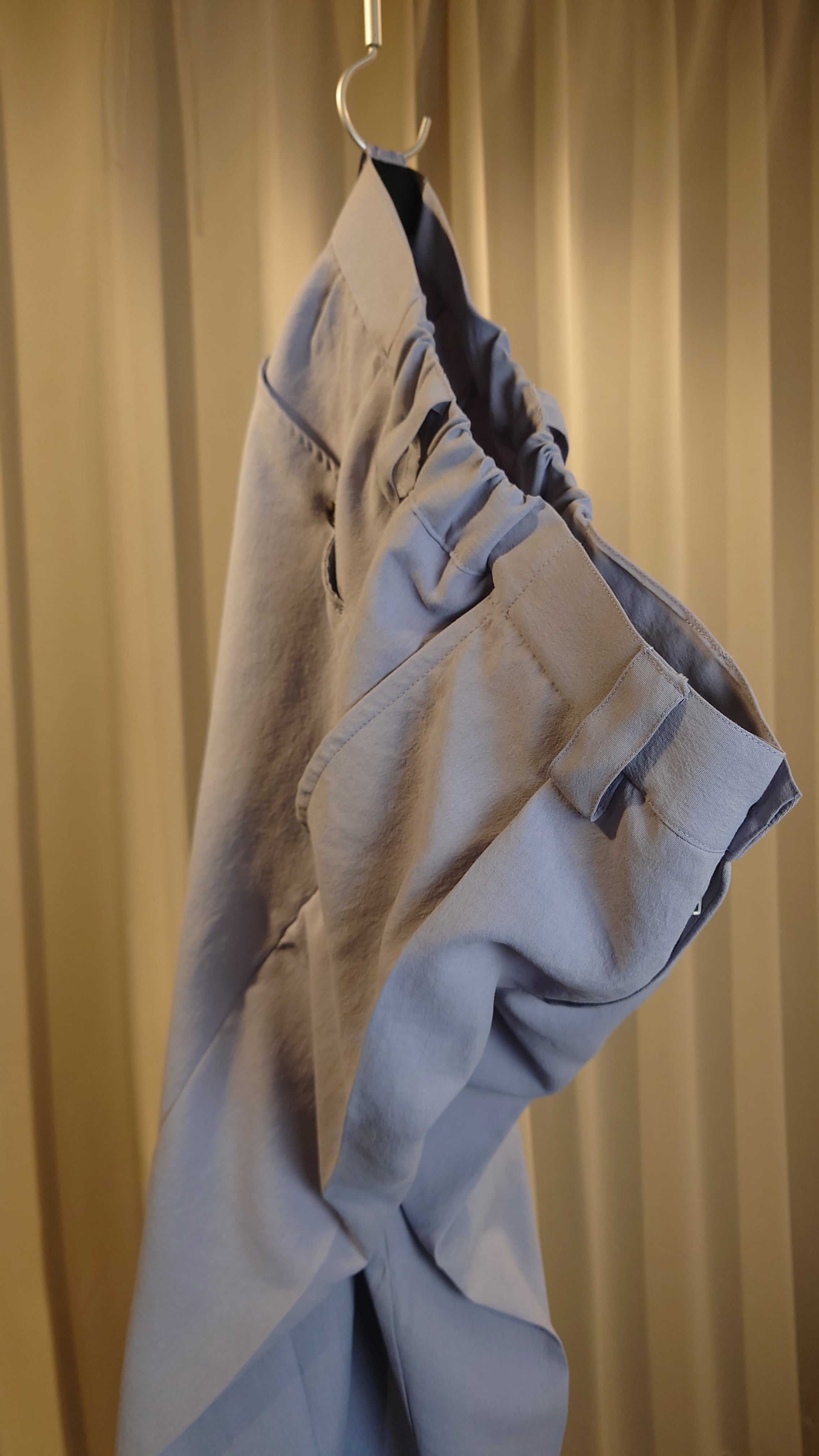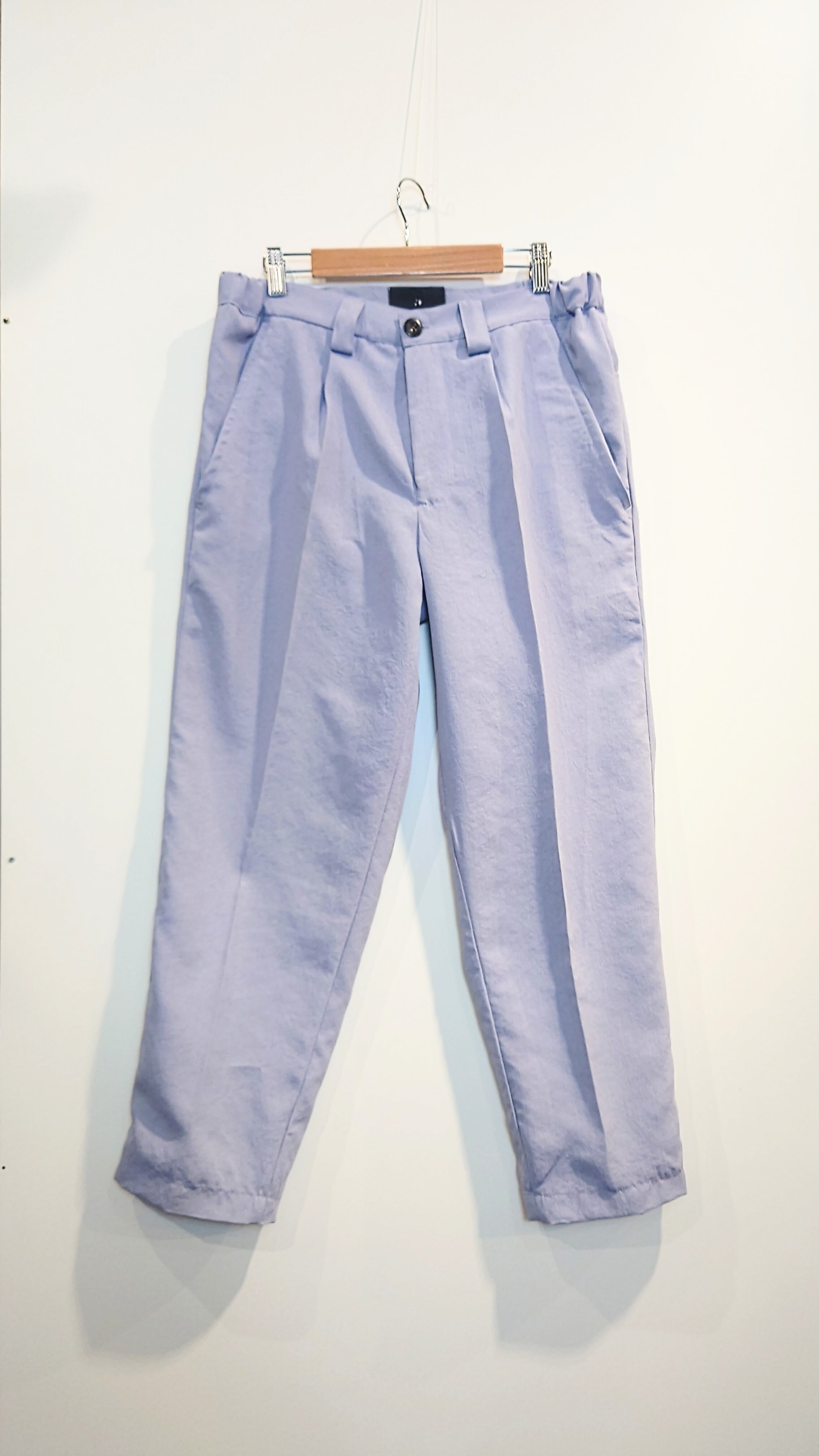 トラウザースとイージーパンツのハイブリッド。進化素材を使用し快適さに特化したシャーリングトラウザースです。ワイドフォルムのバージョンです。