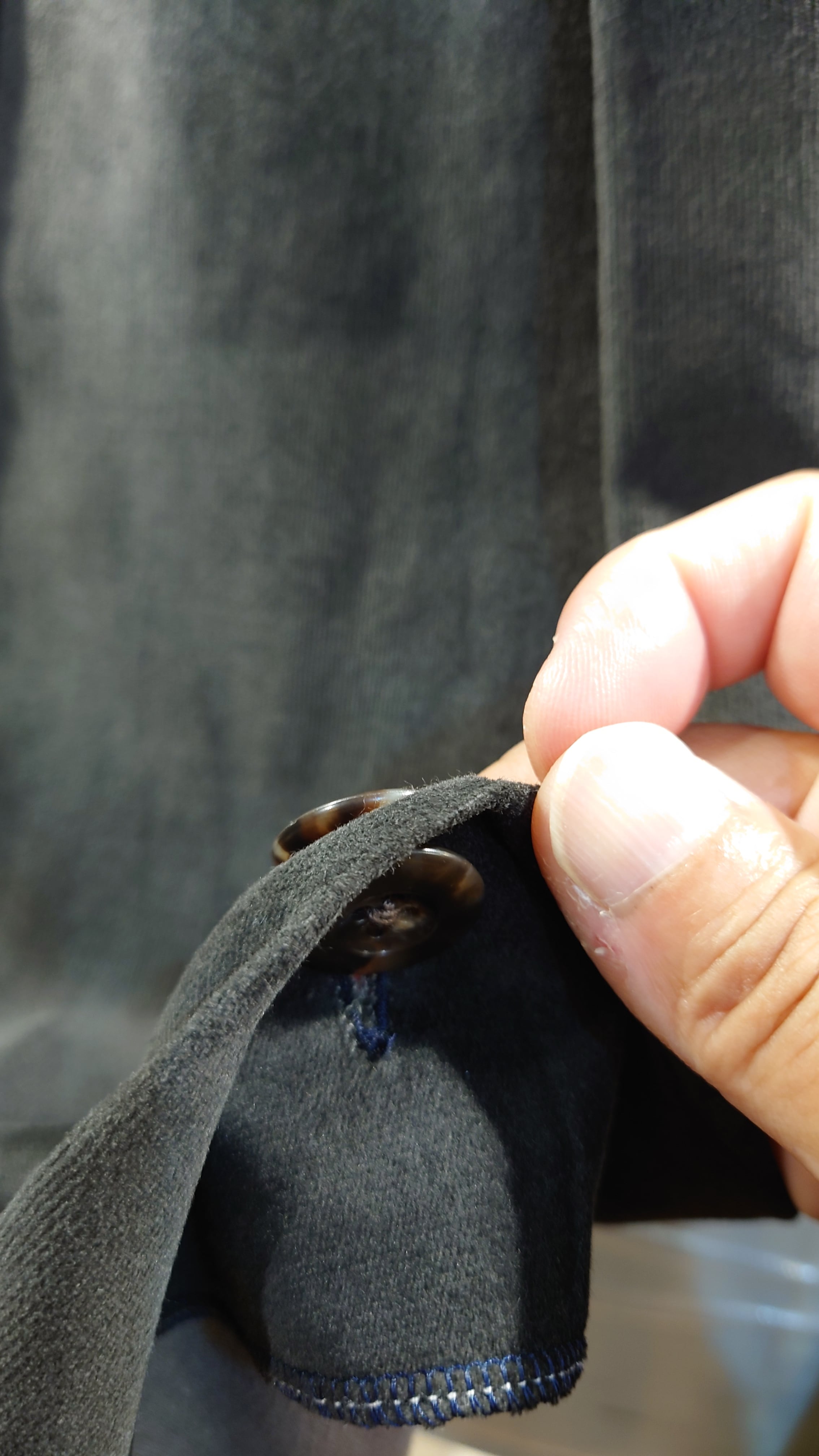 拝みボタン、両ボタンホール仕様で右前、左前いずれにもご着用頂けます。