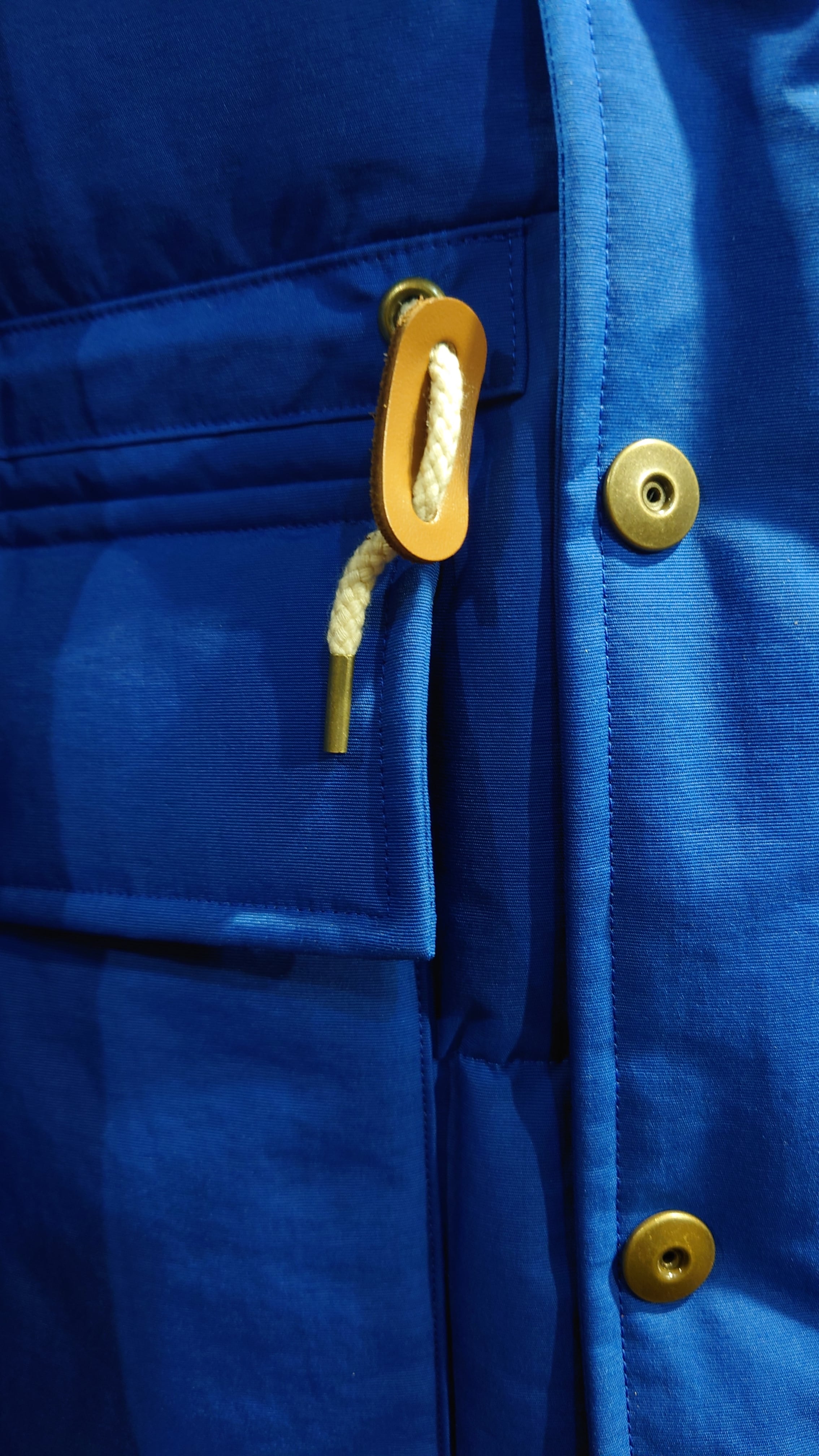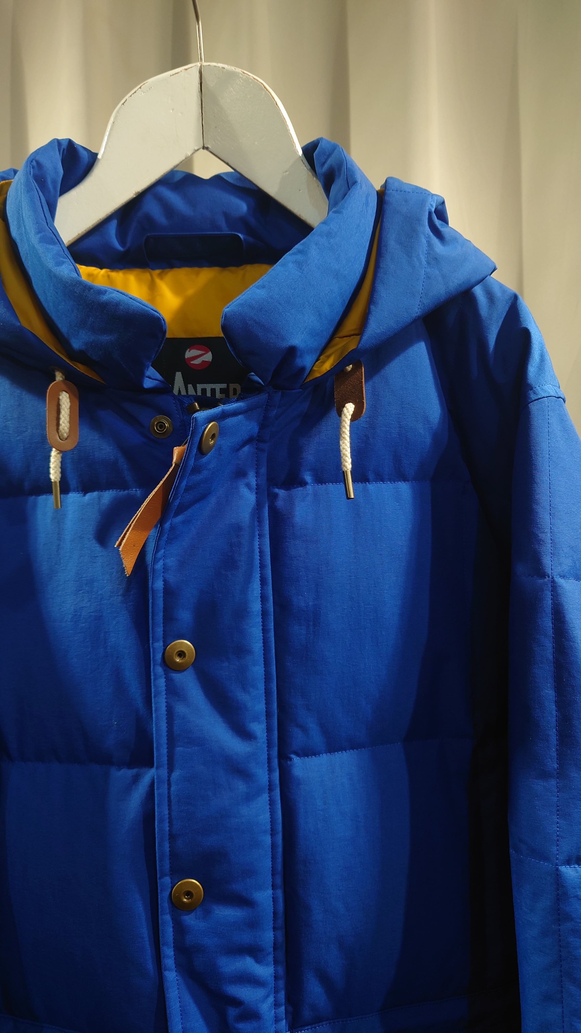 1956年 manasuru 登山隊 登頂 モデルをアップデートして現代風に モデファイしました。正方形のキルト パターンと腰ポケットのクラシカルな雰囲気を残しつつ 表地には東レの防水透湿 防風素材のデルフィーを採用 雨風を防ぎ 快適性を発揮 また ナイロン100%でありながらコットン素材のような ハリ感のある 風合いが特徴 。裏地には羽毛の暖かさをより強く感じられる 高密度ポリエステルを使用。 羽毛は国内で独自のルートで回収した リサイクルダウンを採用 通常のバージョン バージン 羽毛と同じ工程で洗浄されたダウンは600フィルパワーを実現で保温性も抜群です。