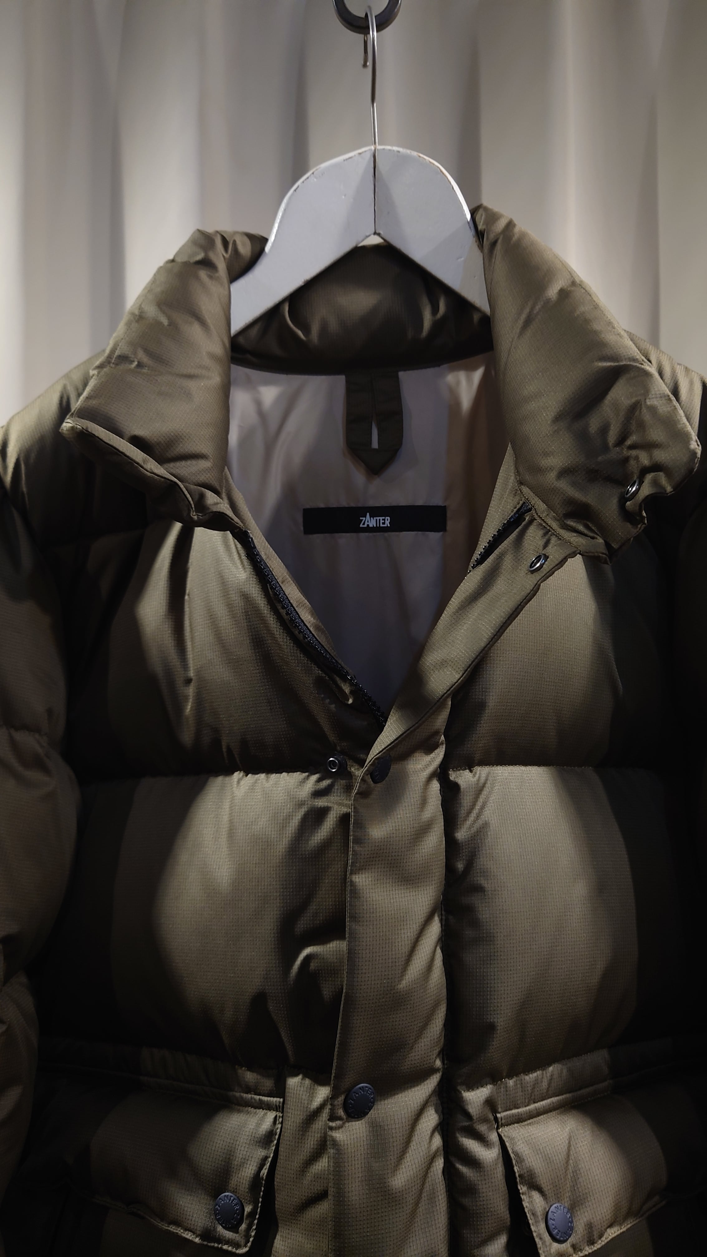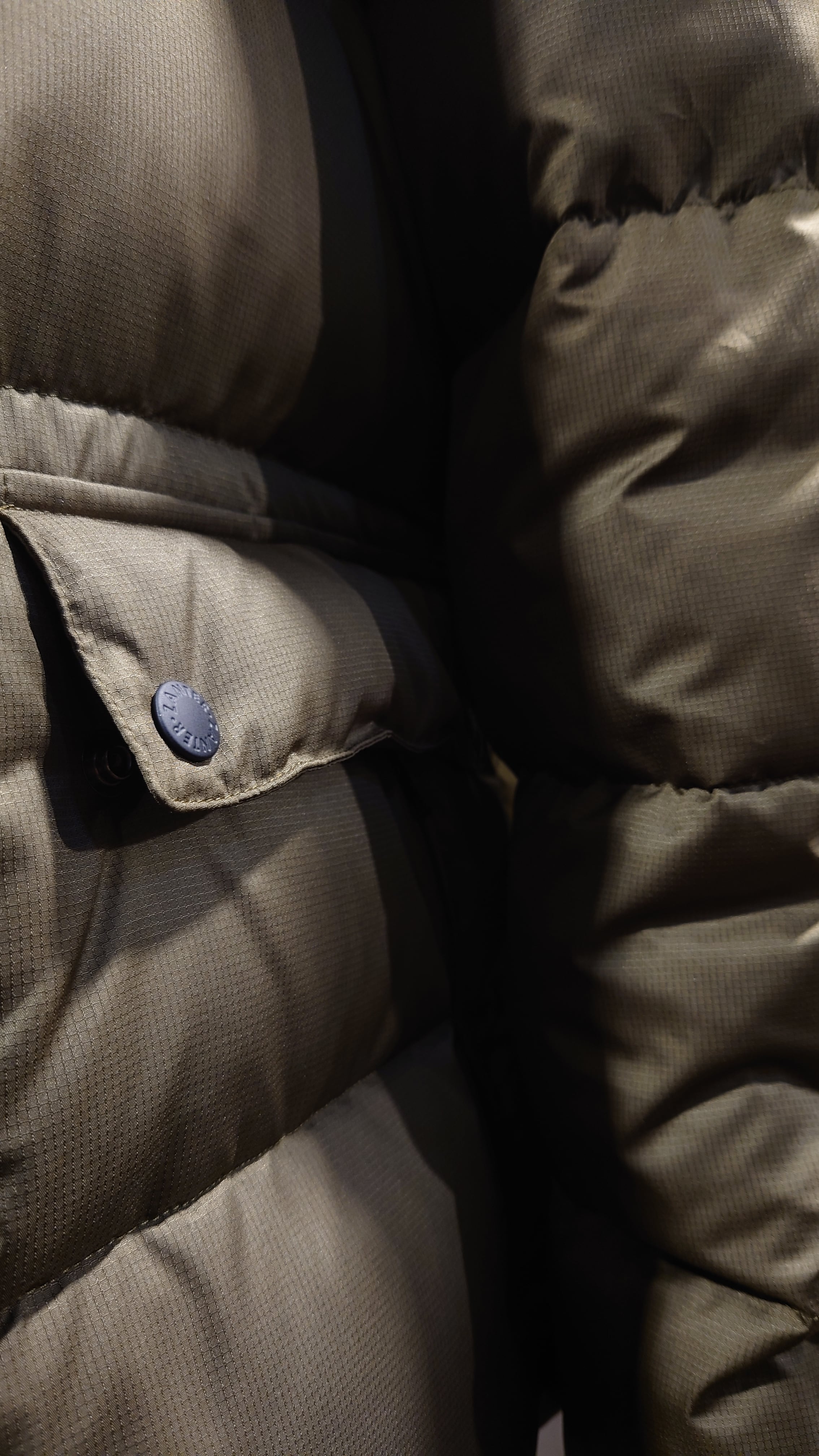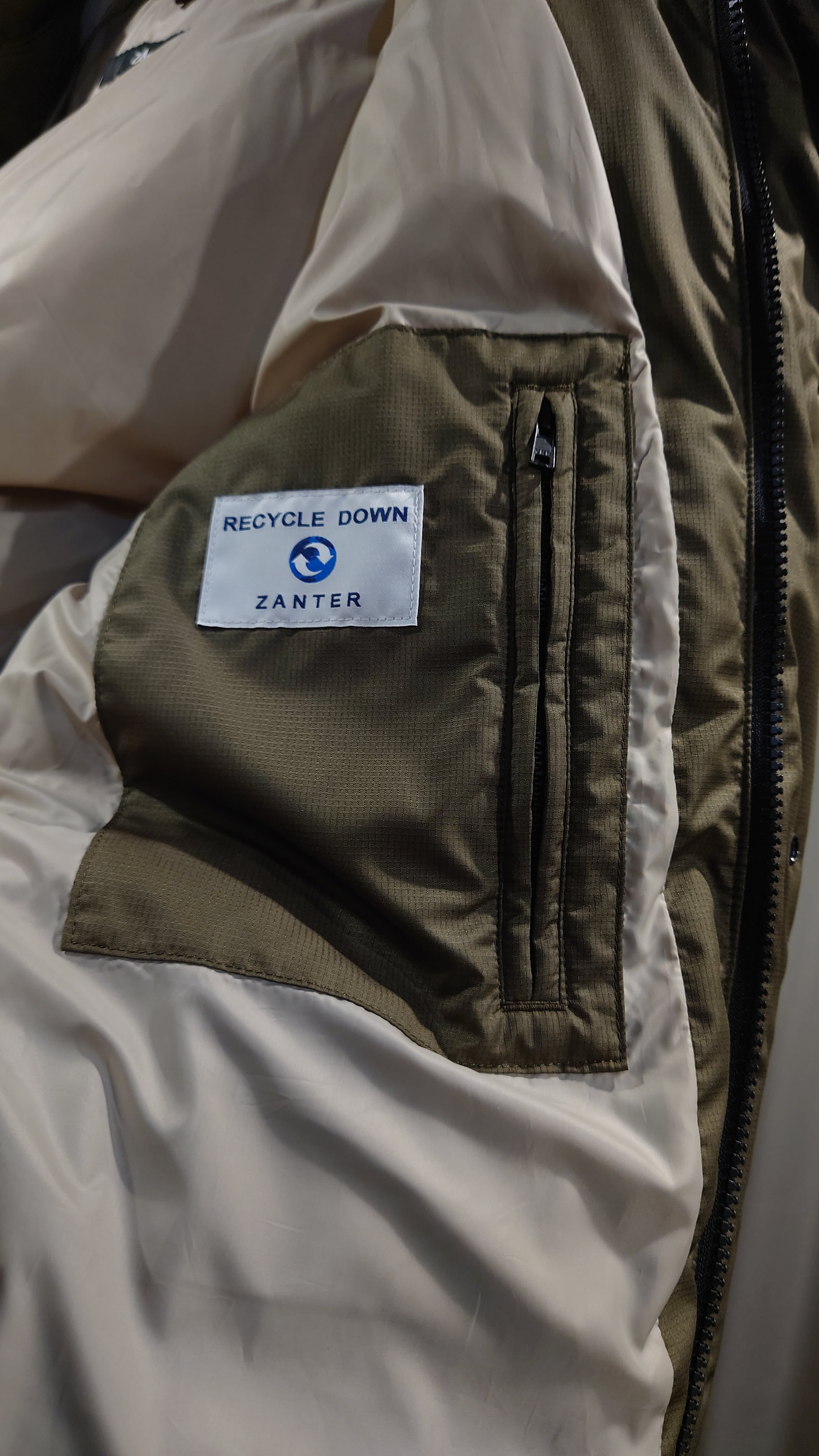 羽毛の品質を全面に打ち出したシンプルなダウンジャケット。ポリエステルマイクロリップストップの表地。裏地には羽毛の暖かさをより強く感じられる 高密度ポリエステルを使用。 ハンドウオーム付きフラップパッチポケットのディテール。羽毛は国内で独自のルートで回収した リサイクルダウンを採用 通常のバージョン バージン 羽毛と同じ工程で洗浄されたダウンは600フィルパワーを実現で保温性も抜群です。
