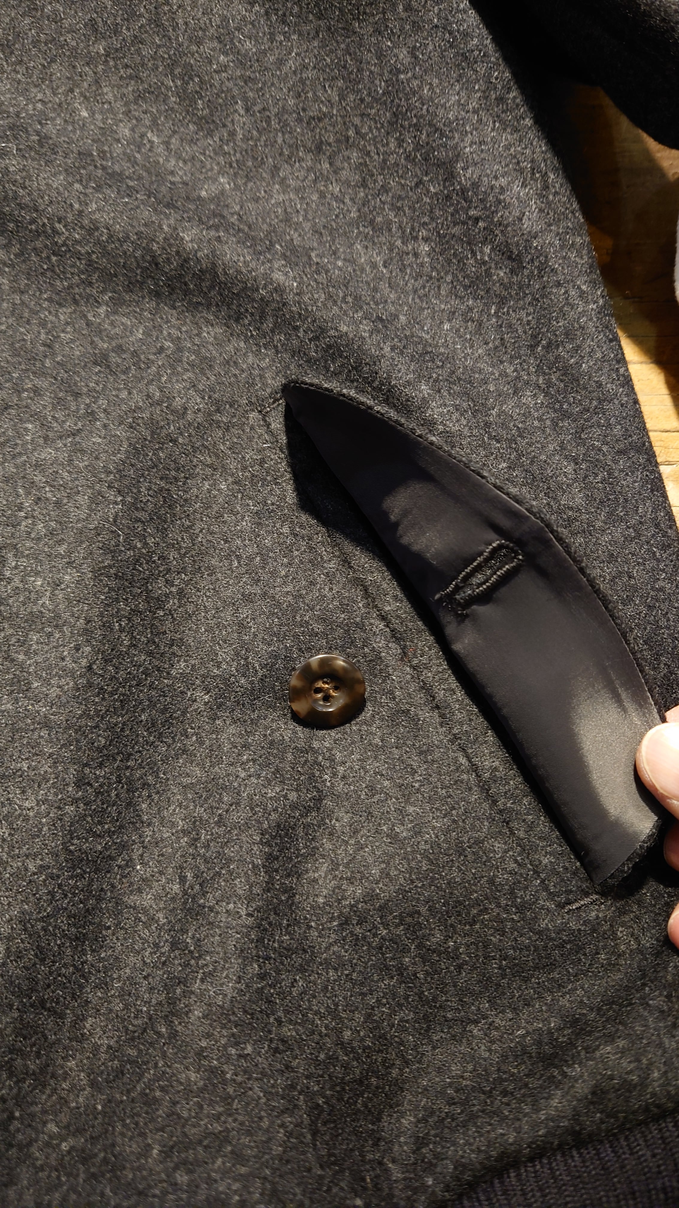 ファスナーの最高峰ホワイトブロンズのエクセラファスナー。ベンベルグライニング。メリヤス工場で編み立てられたウールリブなど、流行の影響を受けること無く永く付き合えるトラッドアイテムという事で使用した付属も特に上質なものです。毛芯や接着芯など必要に応じた4種類の芯地を使い分けています。