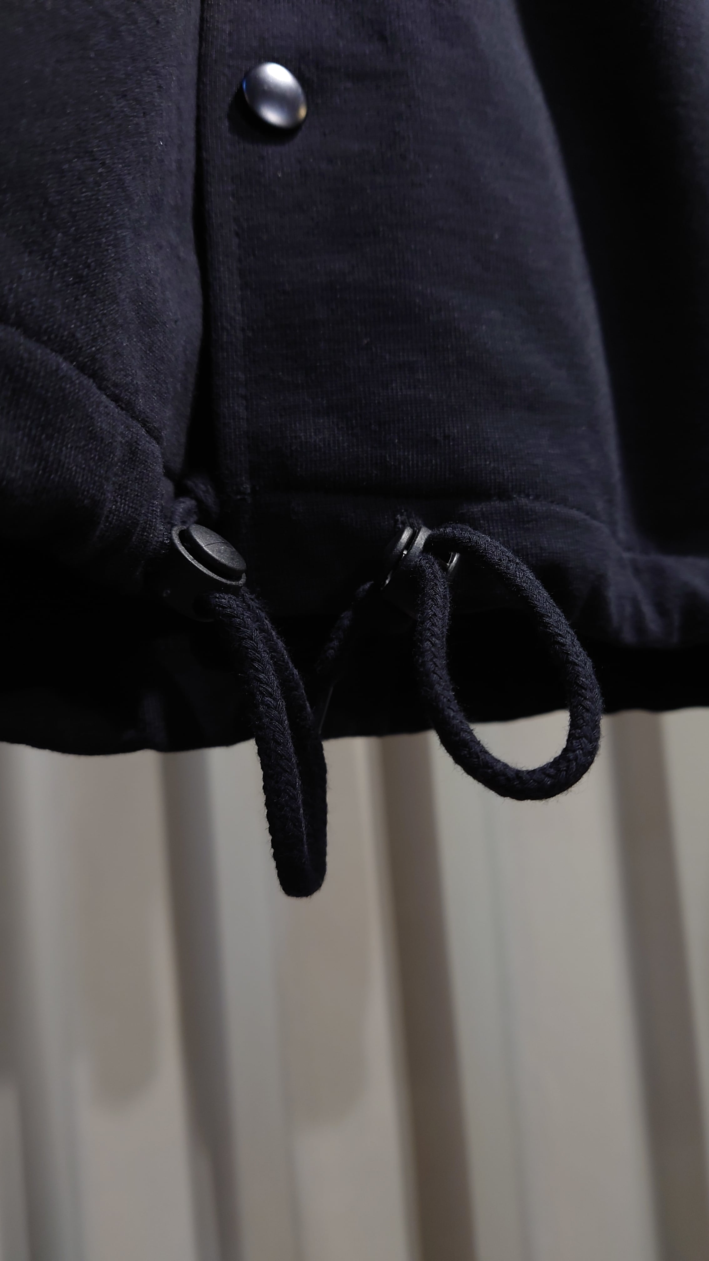 フロントはスナップボタン。裾はドローコード&スピンドル。