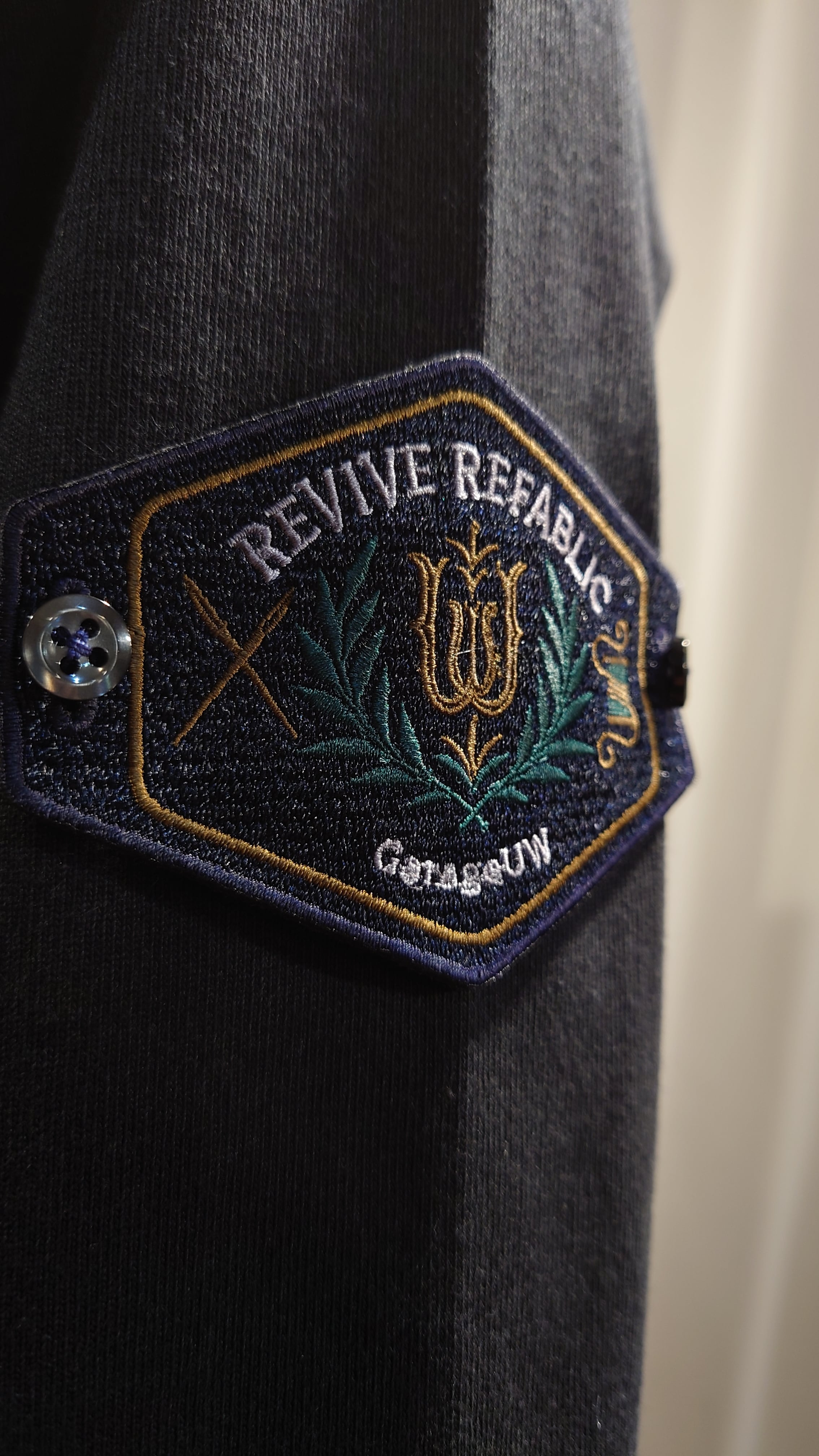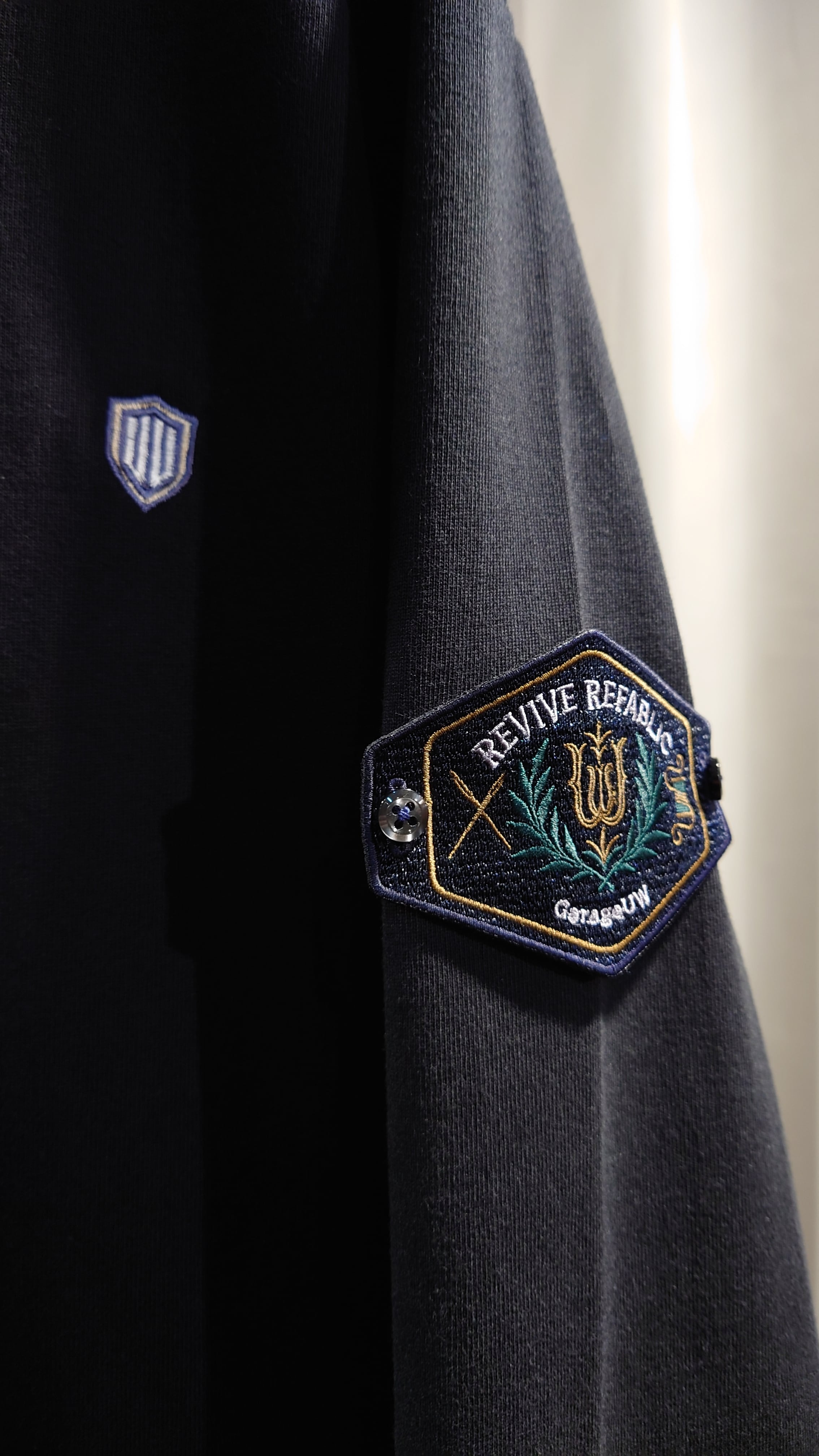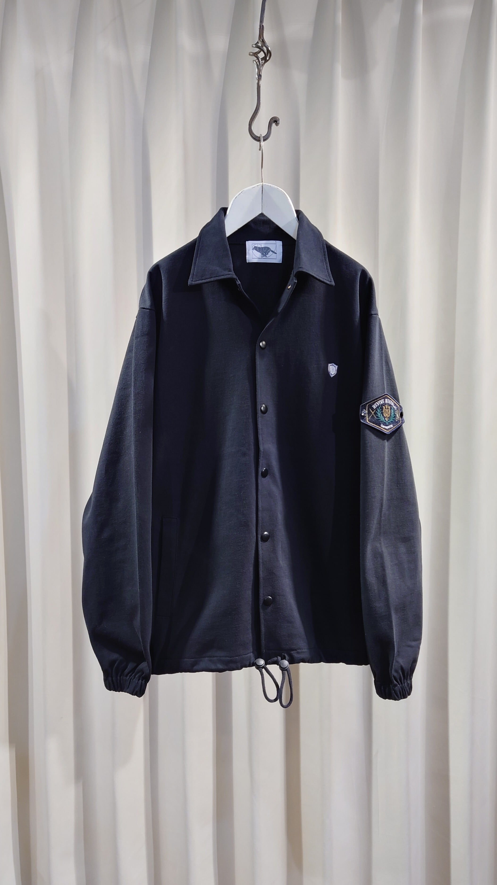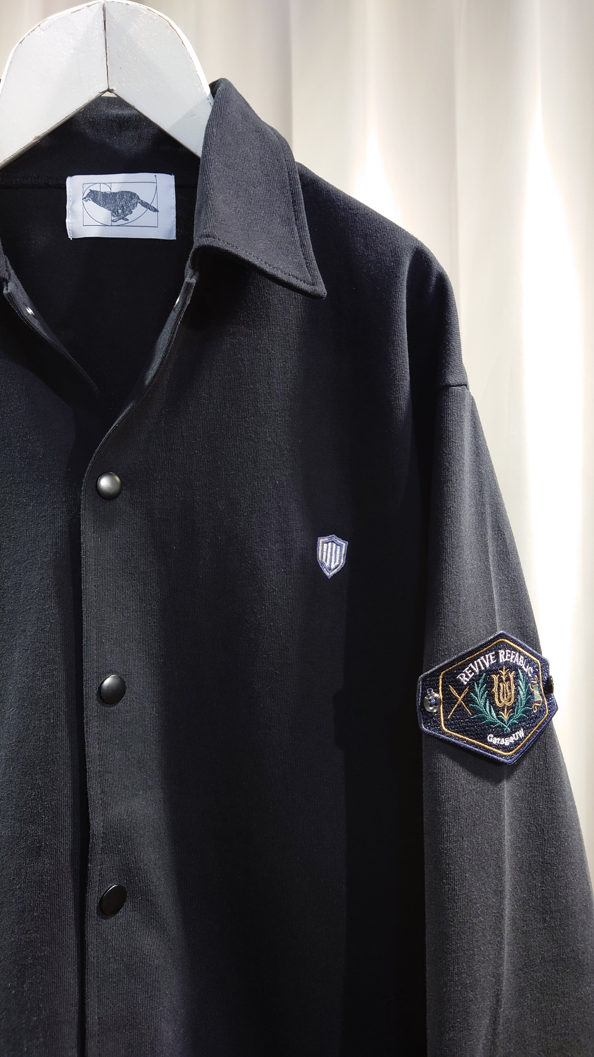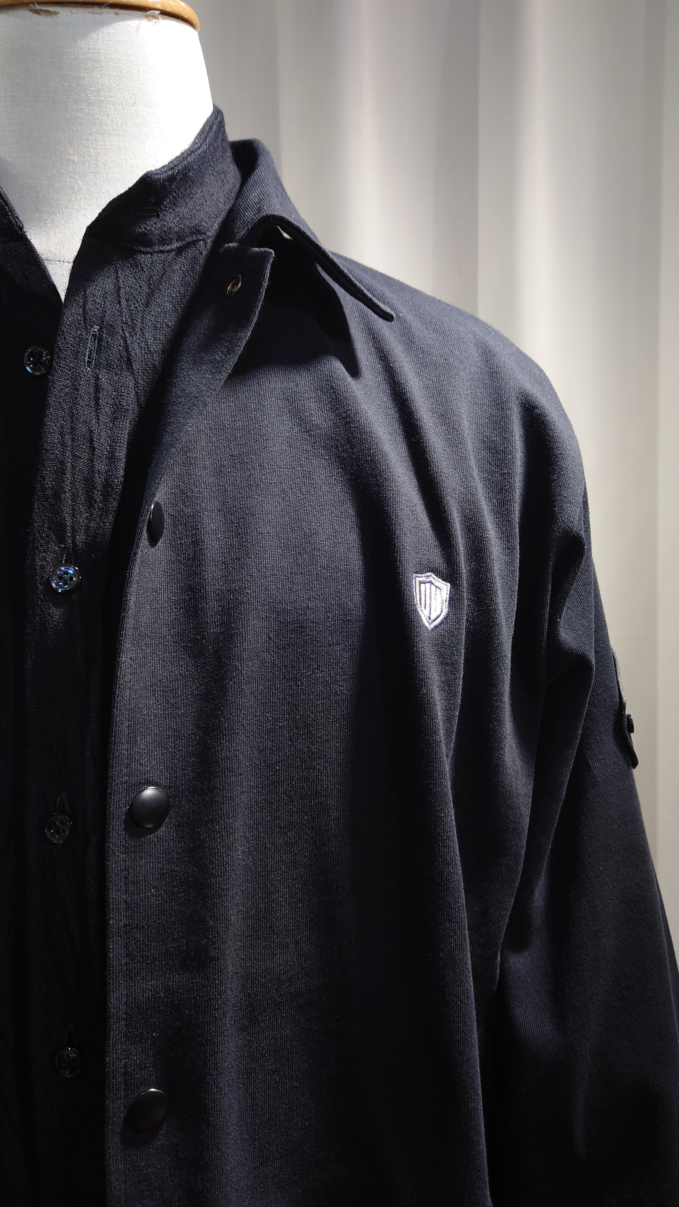 ワッペン腕章、ワンポイント刺繍が特徴のドライブオーバージャケット。ゆとりのあるフォルムでオーバーシャツとカバーオールの中間で羽織りのデイリーさを考えています。ヘビーウエイトな厚みの度詰天竺生地を使用しインナーにもアウターにも置き換わるユーティリティなジャケットです。