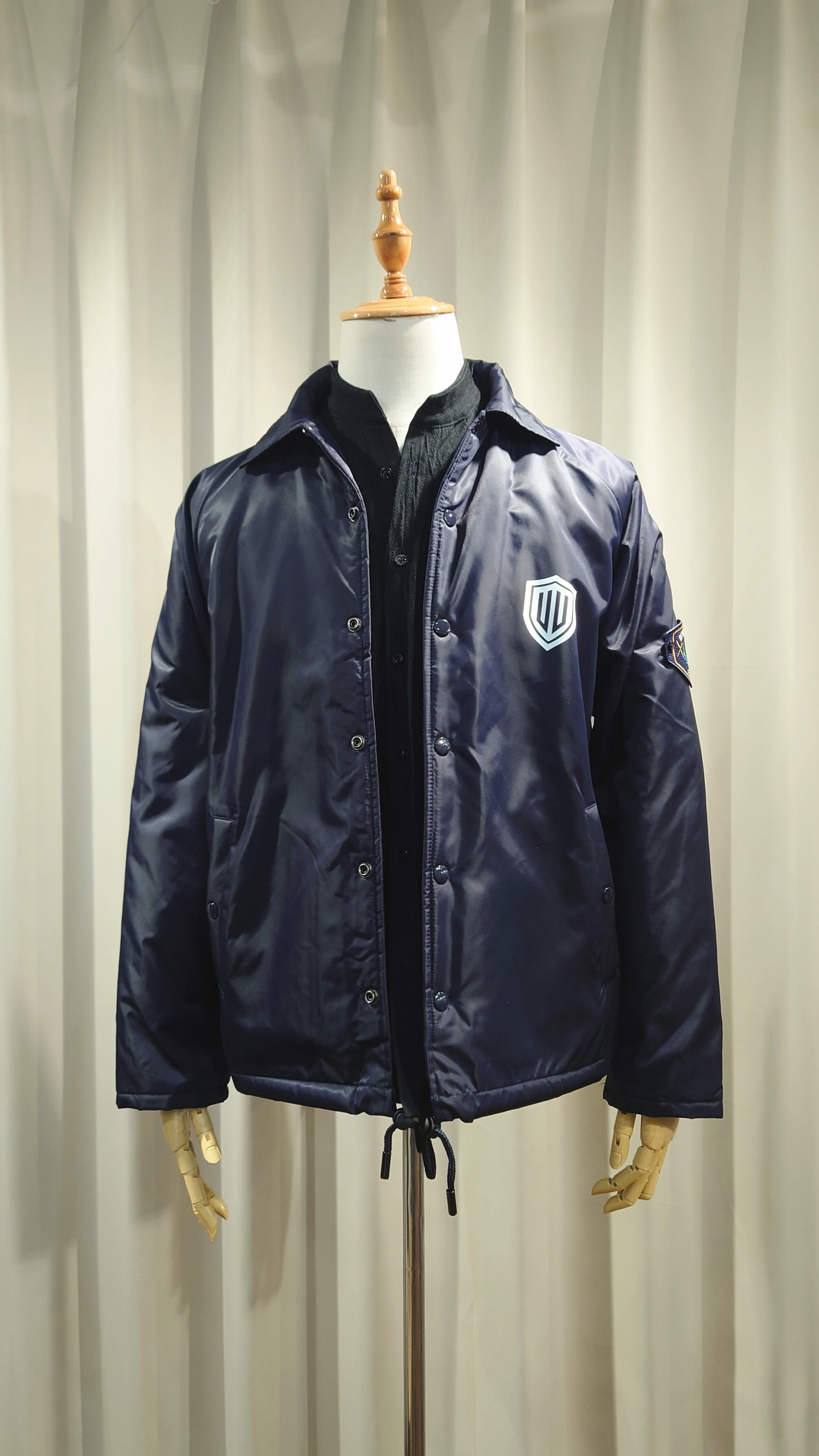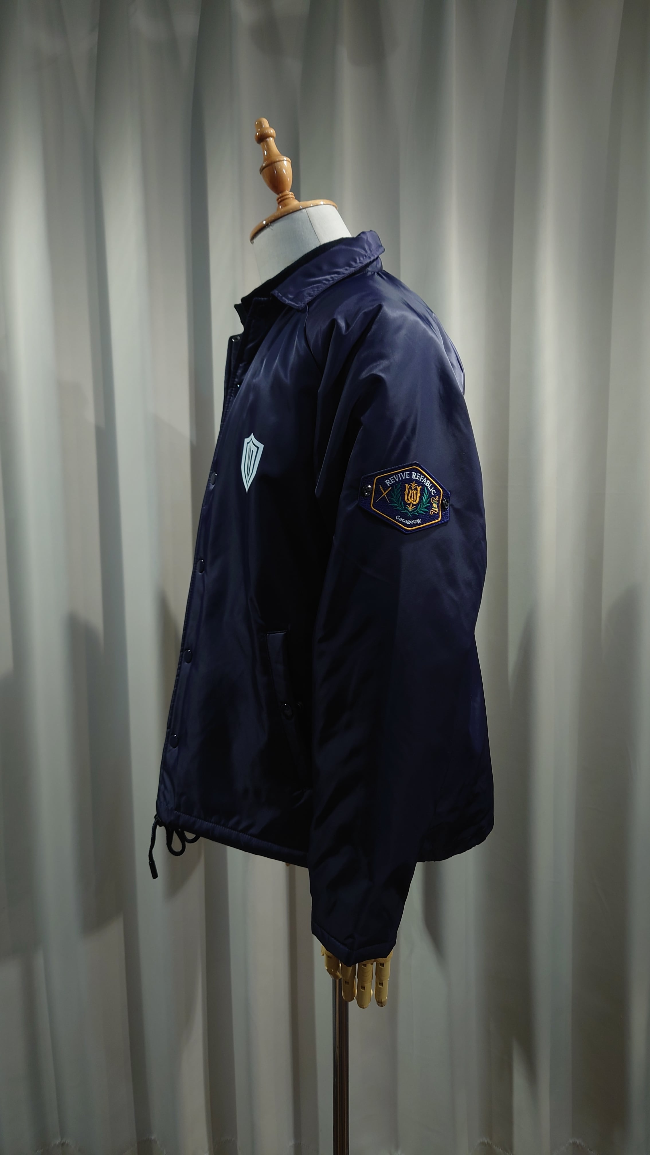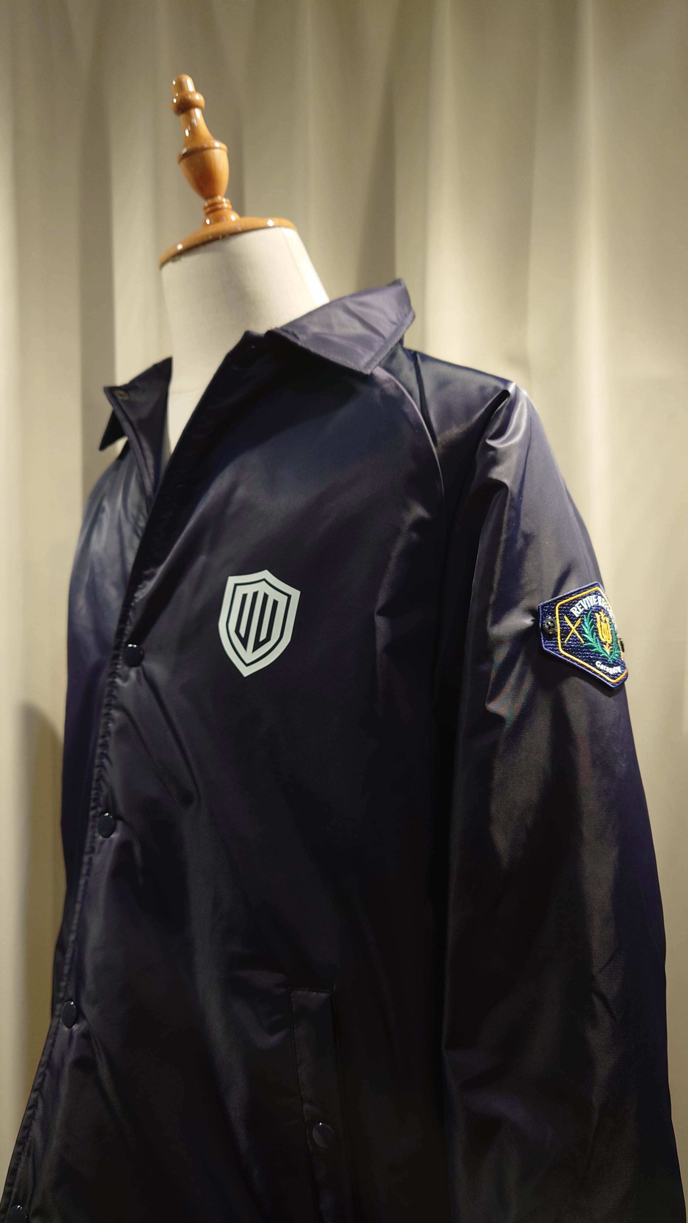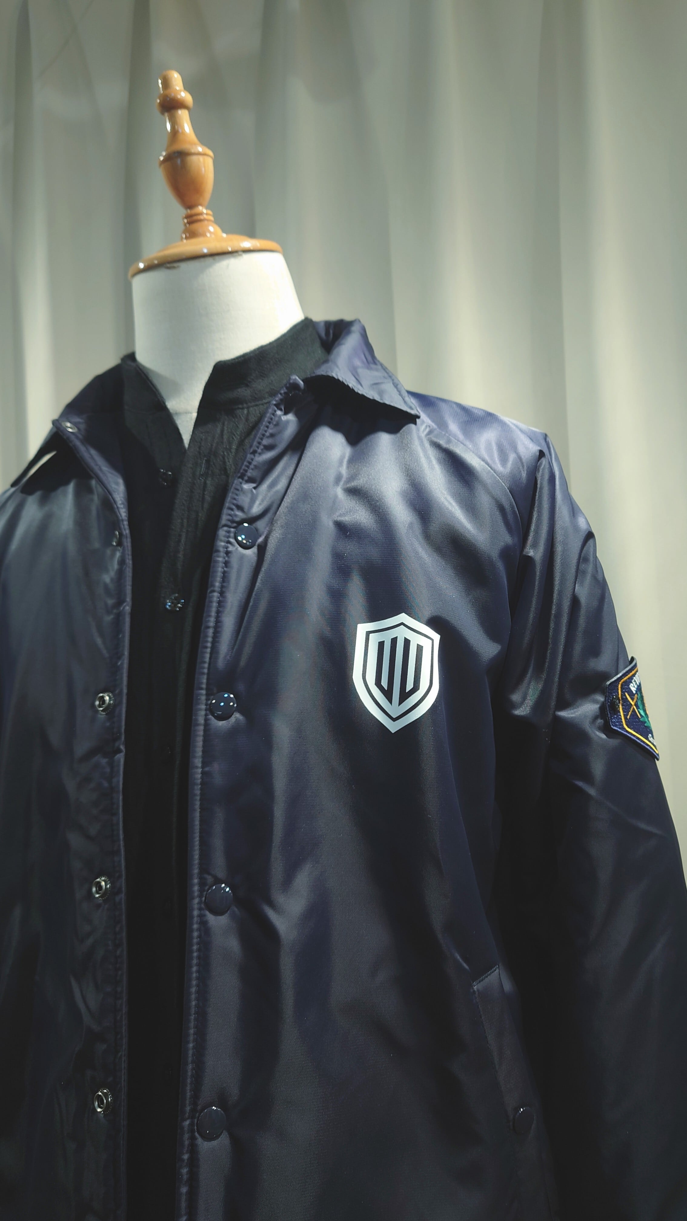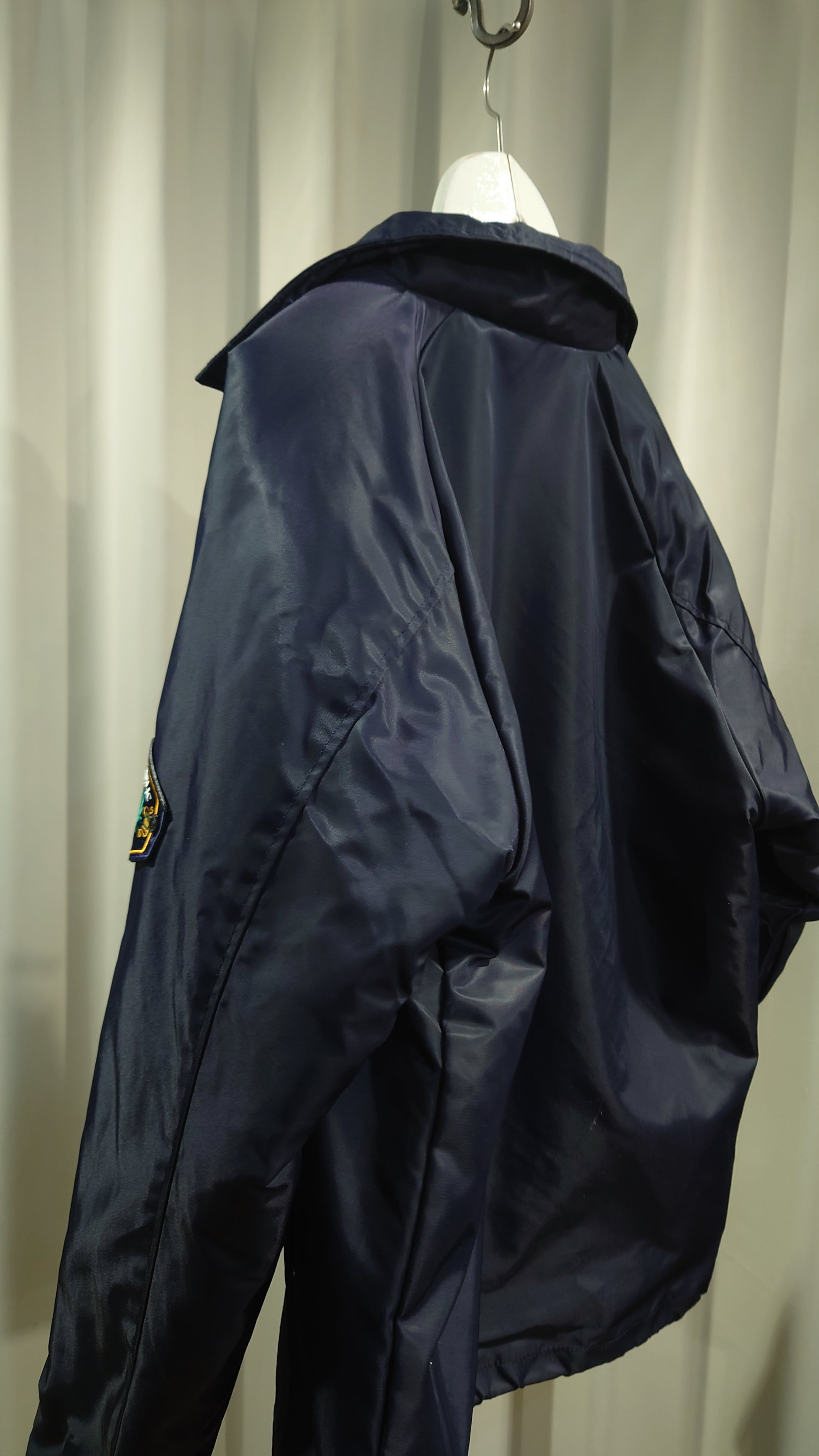 ワッペン腕章、ワンポイントプリントが特徴のボーダーガードをモチーフにしたジャケット。ゆとりのあるフォルムでオーバーシャツとカバーオールの中間で羽織りのデイリーさを考えています。ナイロンツイルを使用しボアのライニングをフラシにした高い防寒性のあるジャケットです。