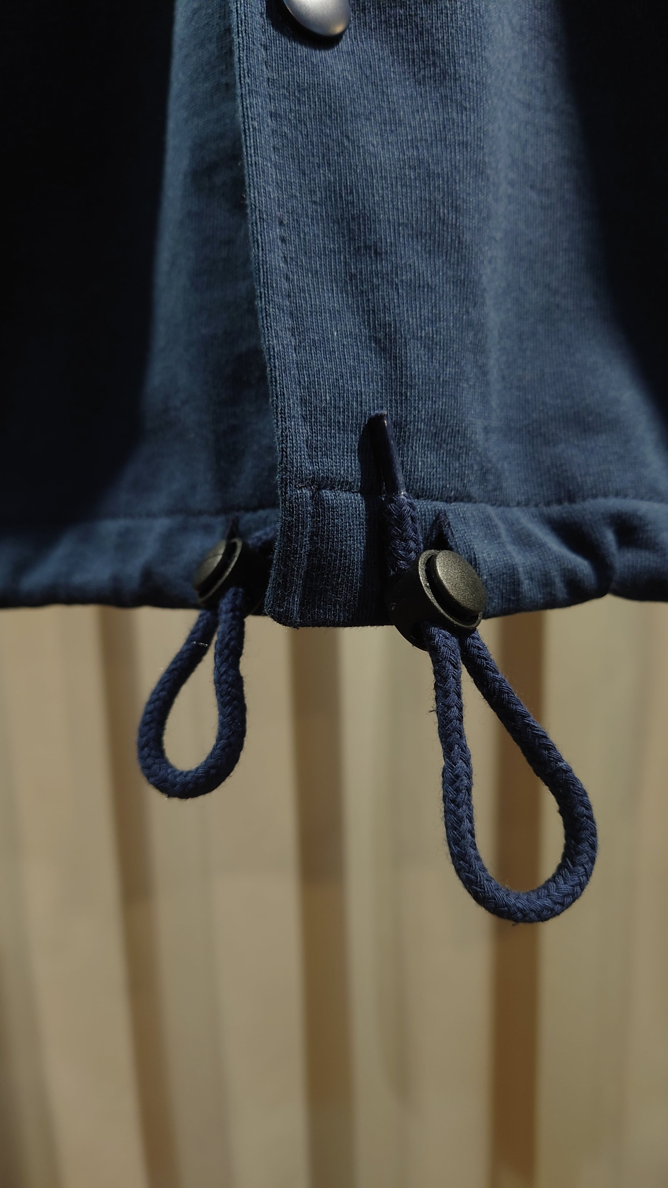 フロントはスナップボタン。裾はドローコード&スピンドル。
