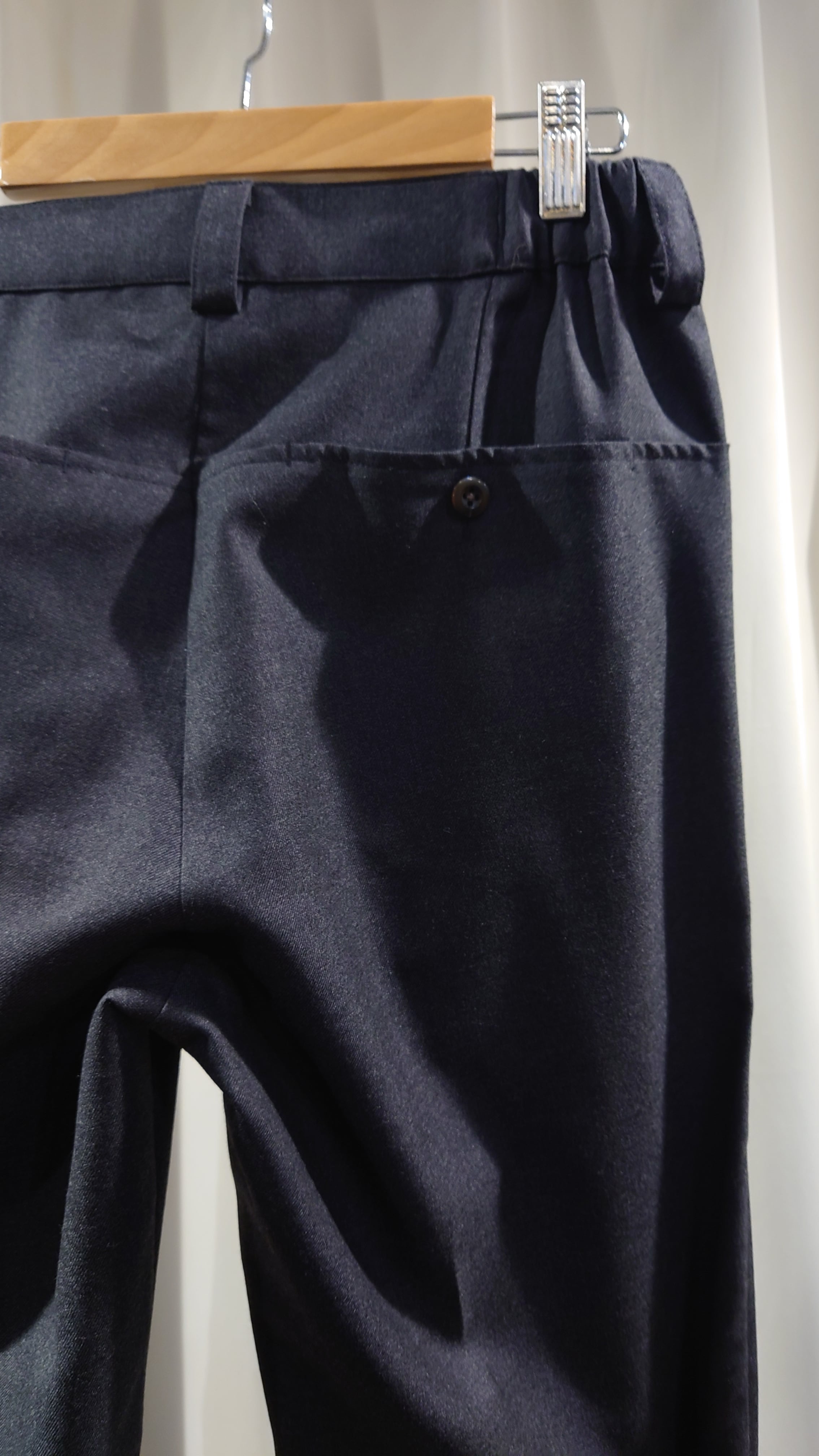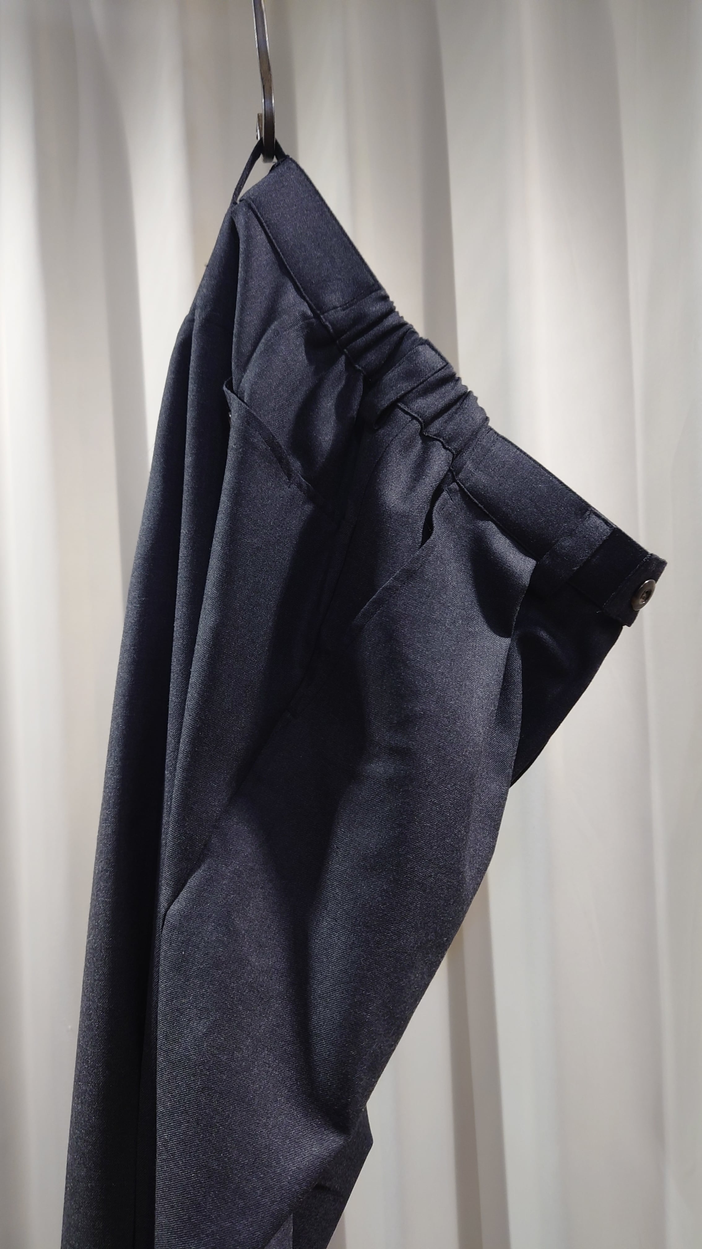 イージーパンツ らしからぬ 印象のウール フラノを使用した トラウザー。ワンタックのウエストラインから緩やかなテーパードを描くフォルムです。立体的なドレープがありシルエットの良さを際立たせています。