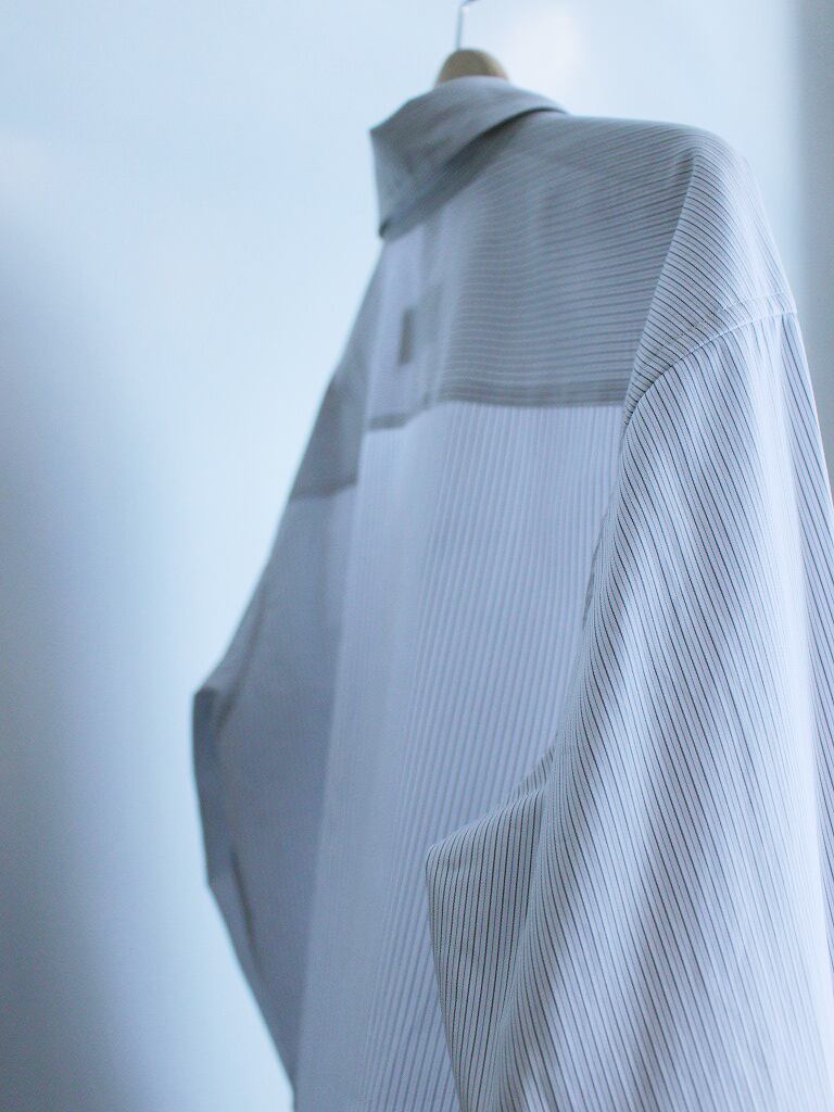 高密度コットンブロードを使用したシャツです。新たにパターンから作り起こした新型スタンダードフォルムは、体の周りに一定の空間を作るようにイメージしたややゆとりがある落ち着いた雰囲気のシルエットです。 シーズンを問わずご着用頂けます。