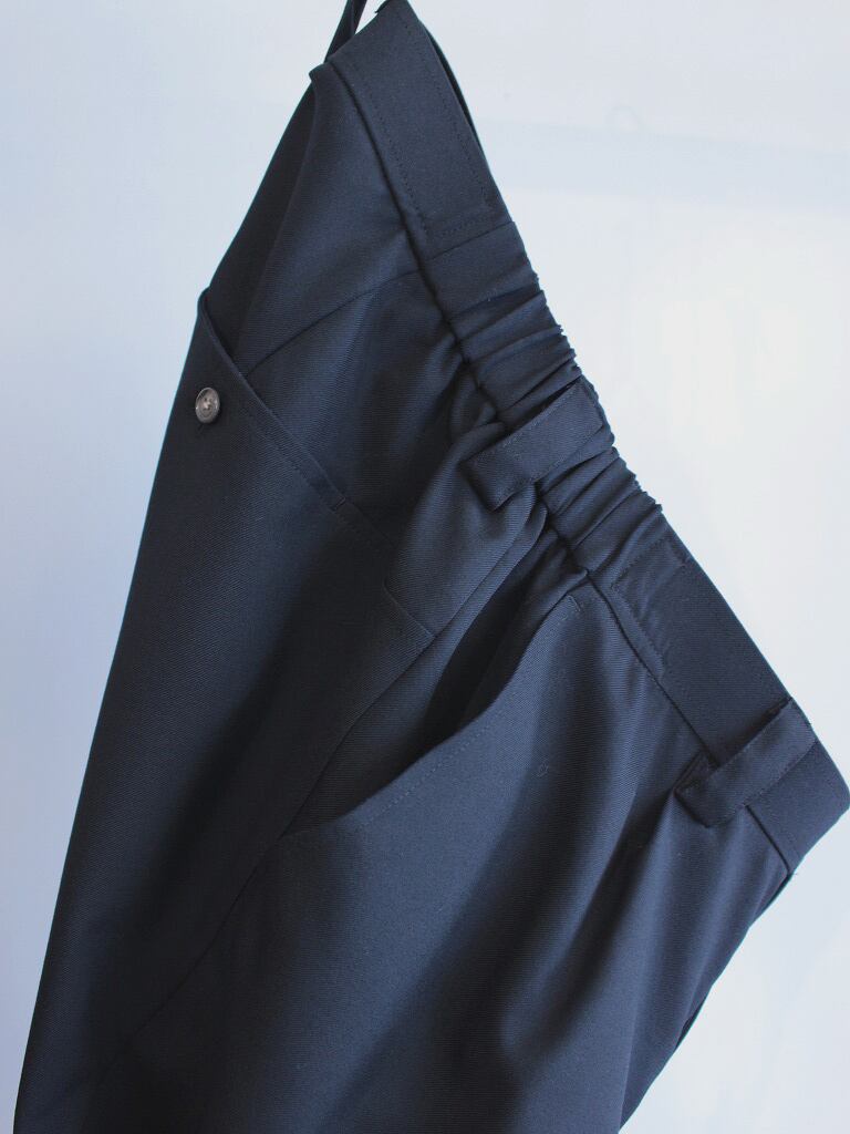 ウールトラウザースのシルエットとイージーパンツのコンフォートをミックスしたデイリーパンツです。