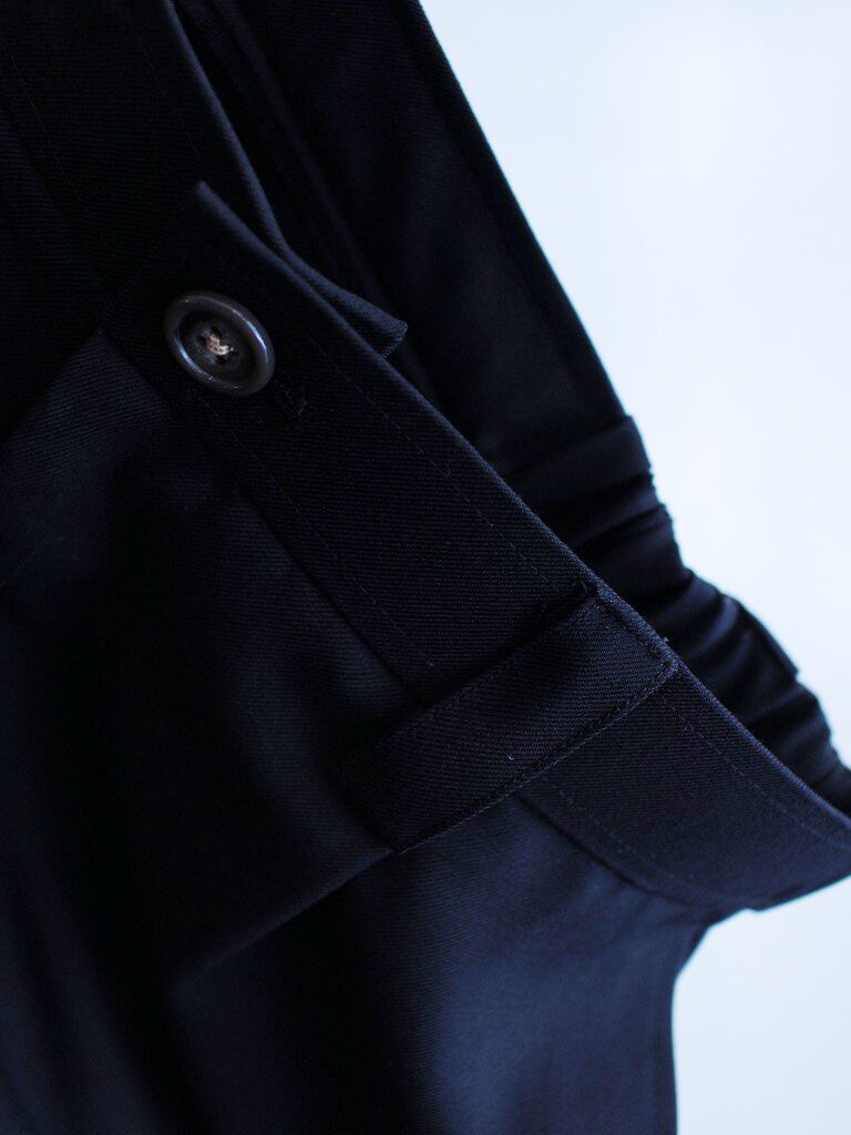 サイドシャーリングで腰位置からの生地のドレープを活かしたテーパードシルエットです。様々なトップスやシューズとの相性の良いバランスに仕上げております。