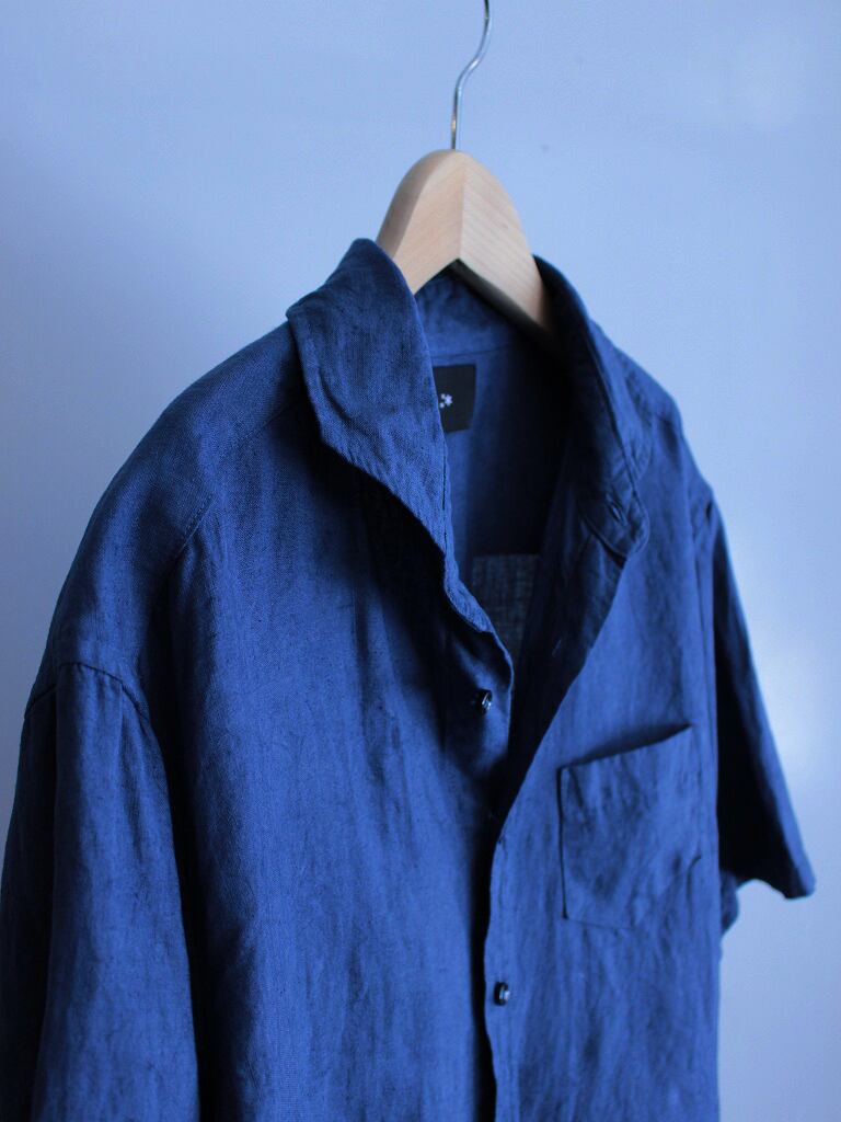 Garage.U.W GERMENT DYE CUTAWAY S/S LINEN SHIRT BLUE GREY
