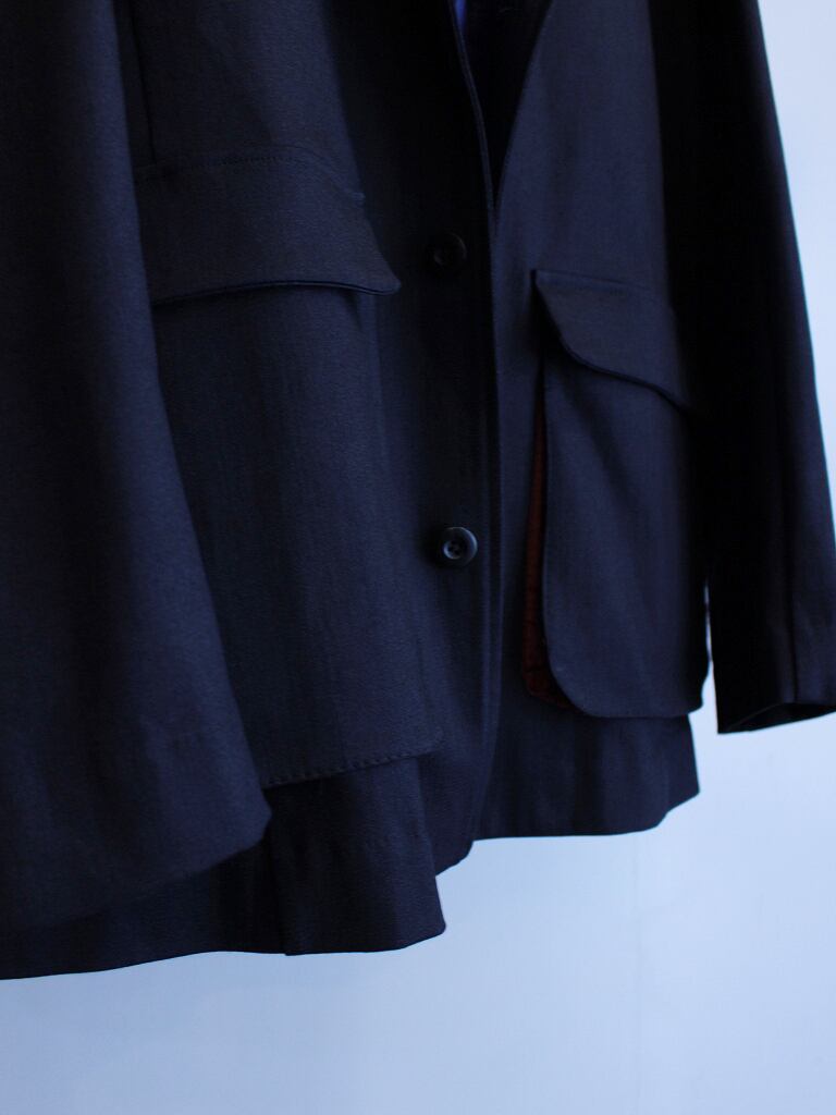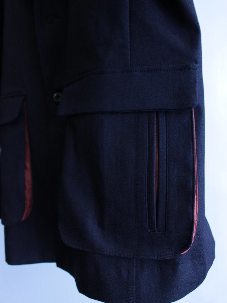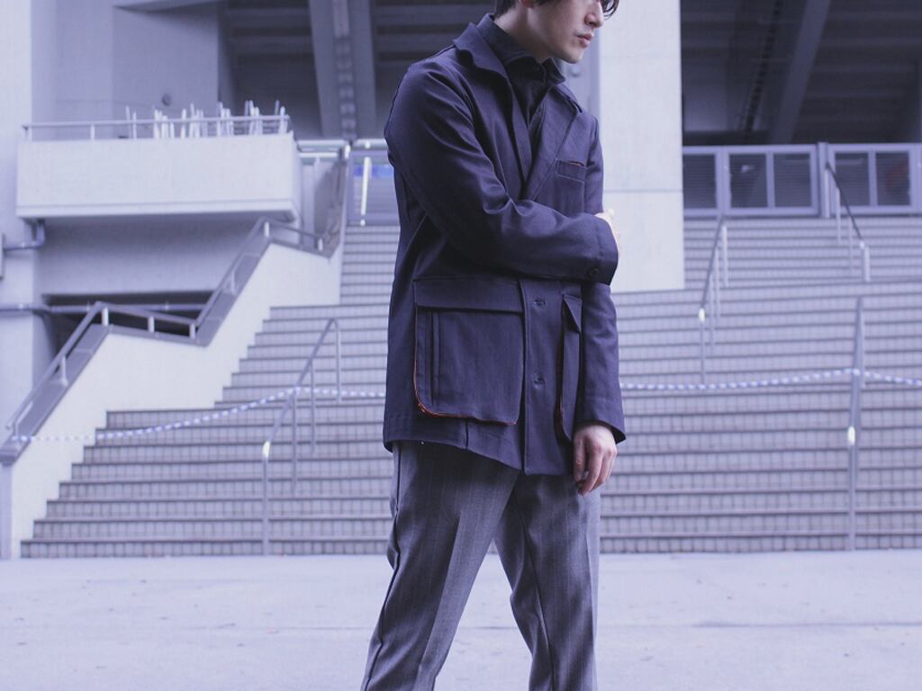 テーラードジャケットをベースにカバーオール、ジャーナリストジャケット、ハンティングジャケットへアプローチしたデザイン。