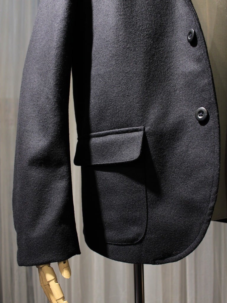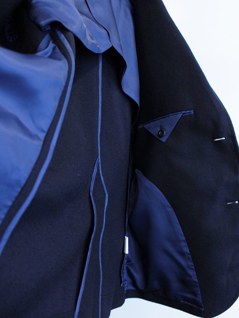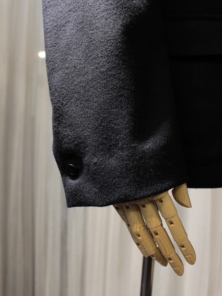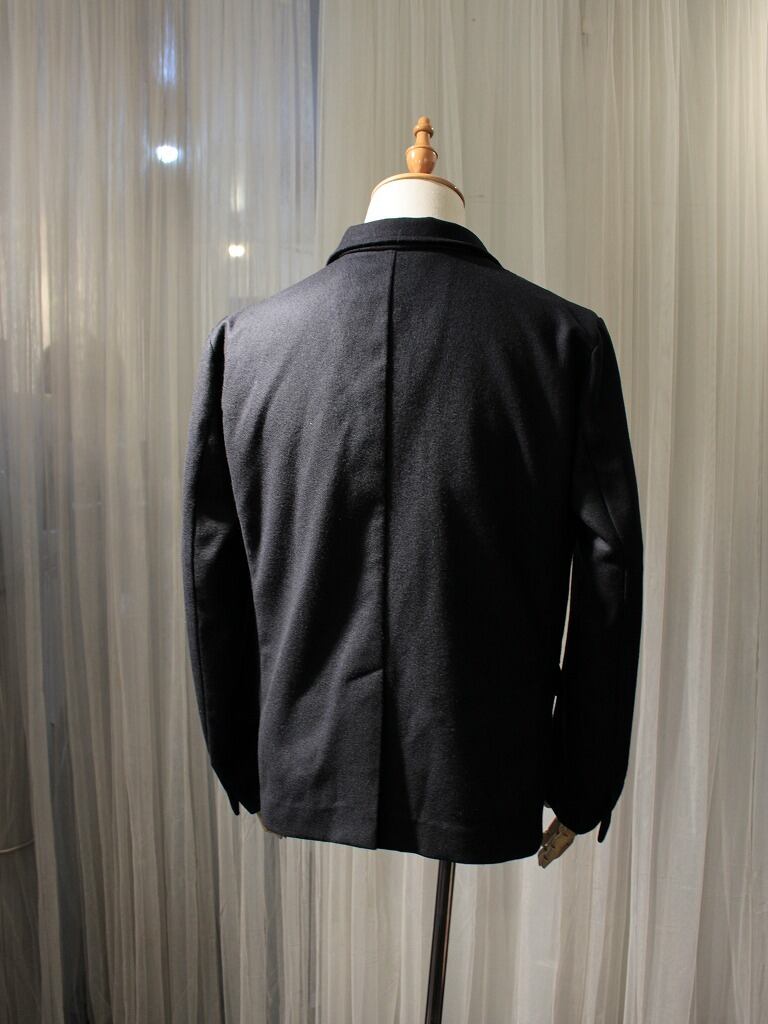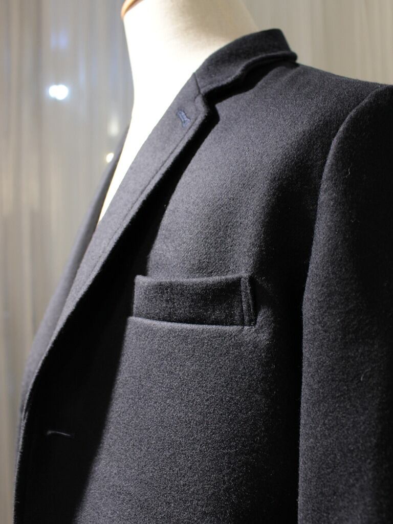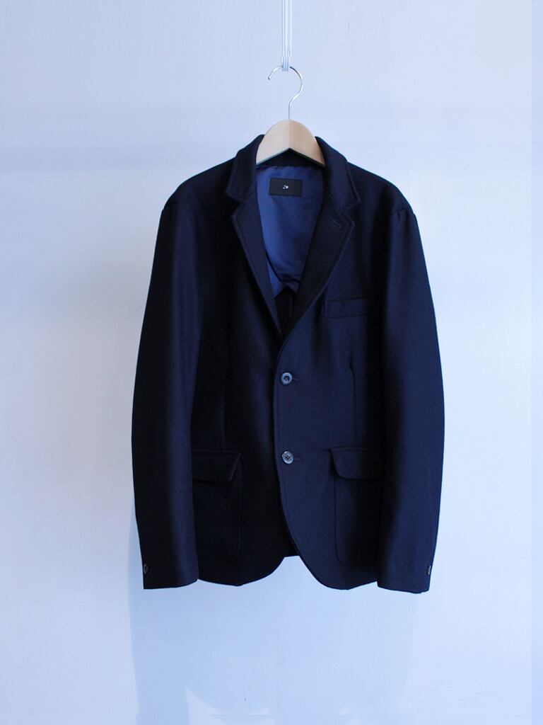 秋冬ムードのあるウーステッドの中でもエレガントな風合いがある綾織りのサキソニーを使用したアンコンジャケットです。