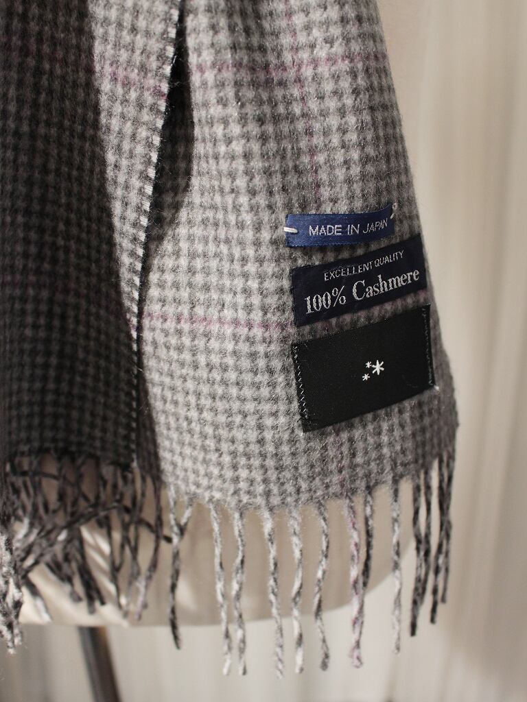 上質なカシミヤを使用して国内で仕立てたスカーフです。