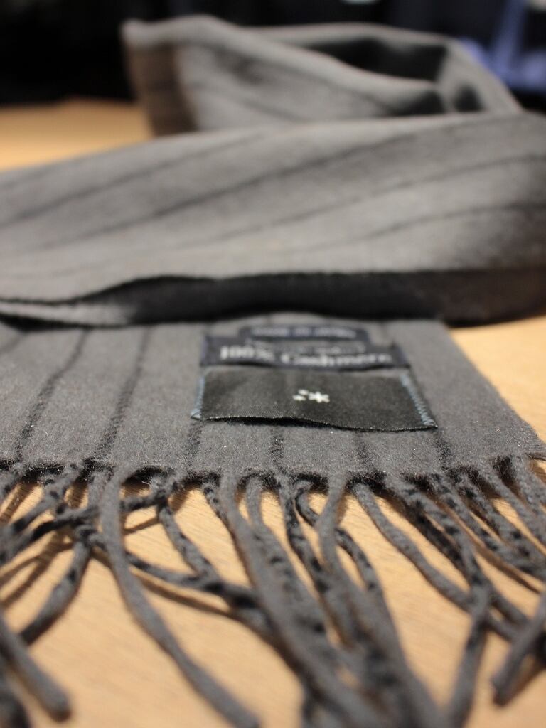 上質なカシミヤを使用して国内で仕立てたスカーフです。