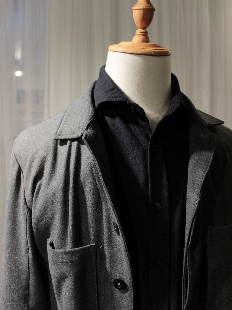 上質で希少な日本製デッドストックカレッジフラノを使用したカッタウエイ型アウターシャツ。