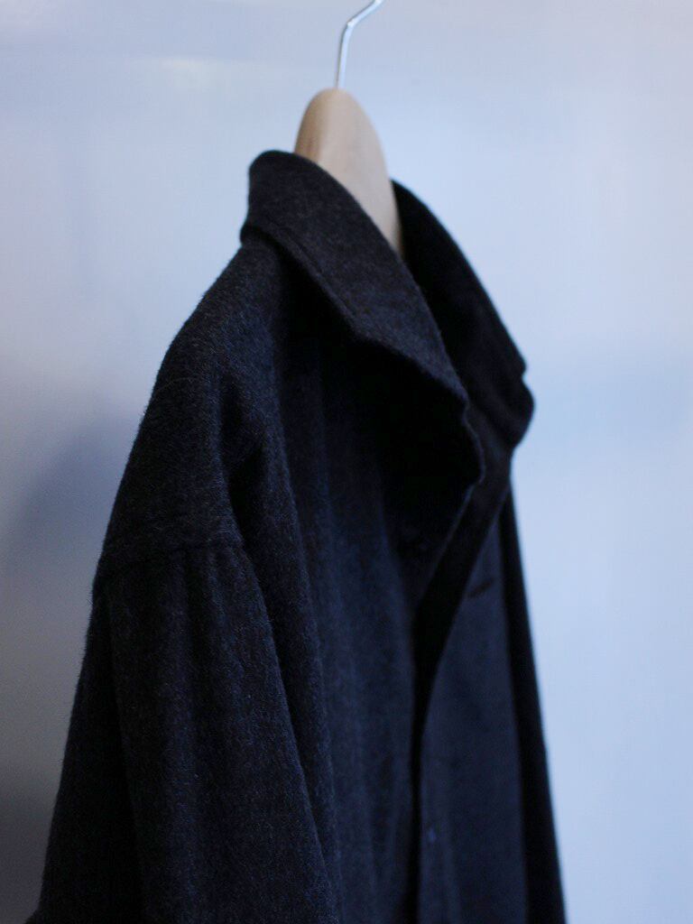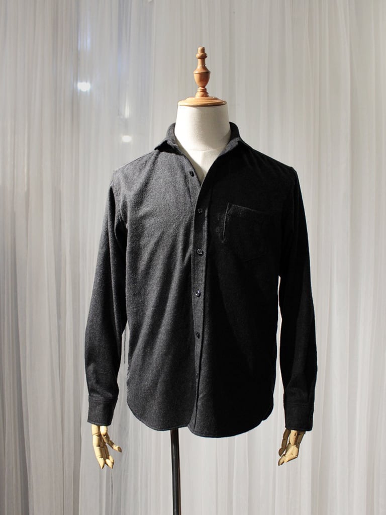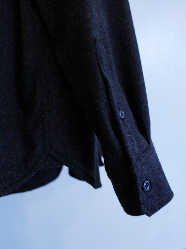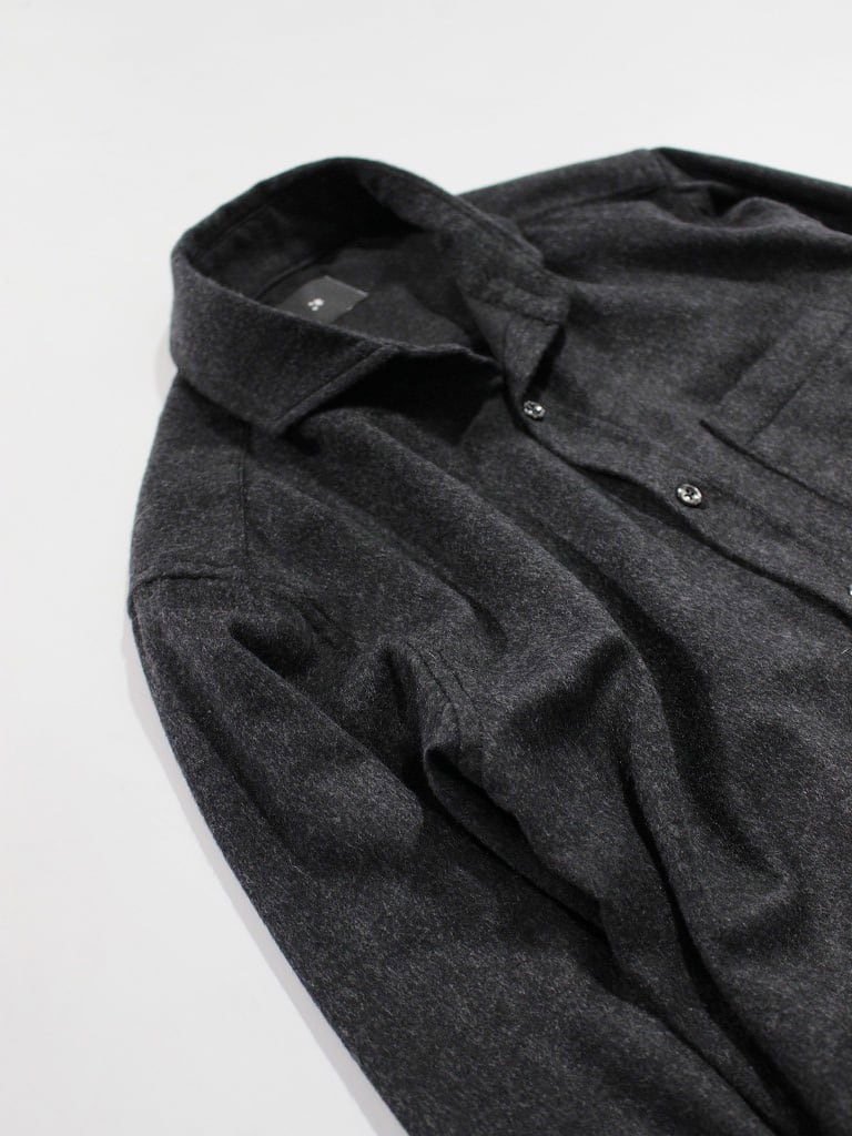 上質で希少な日本製デッドストックカレッジフラノを使用したカッタウエイ型アウターシャツ。