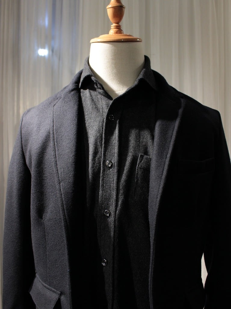 ウーステッドフランネル特有のハリ感があり、高密度によるソフトなタッチとウォーム感が特徴です。