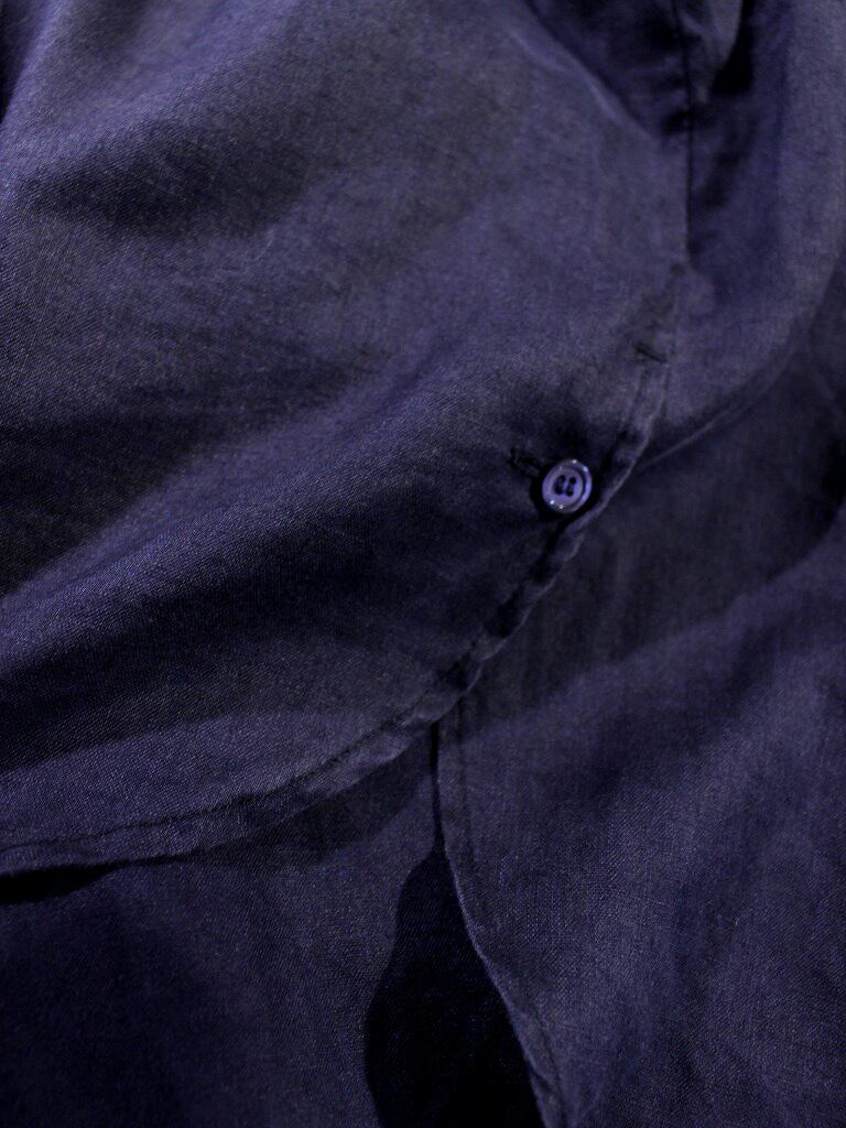 光沢のあるシルケットリネン。ロング丈と7分袖の絶妙なフォルムのシャツです。
