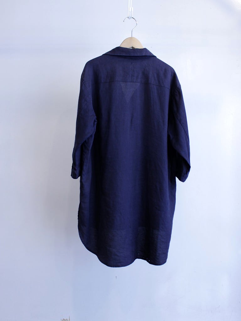 イタリアンカラーのロングシャツ。