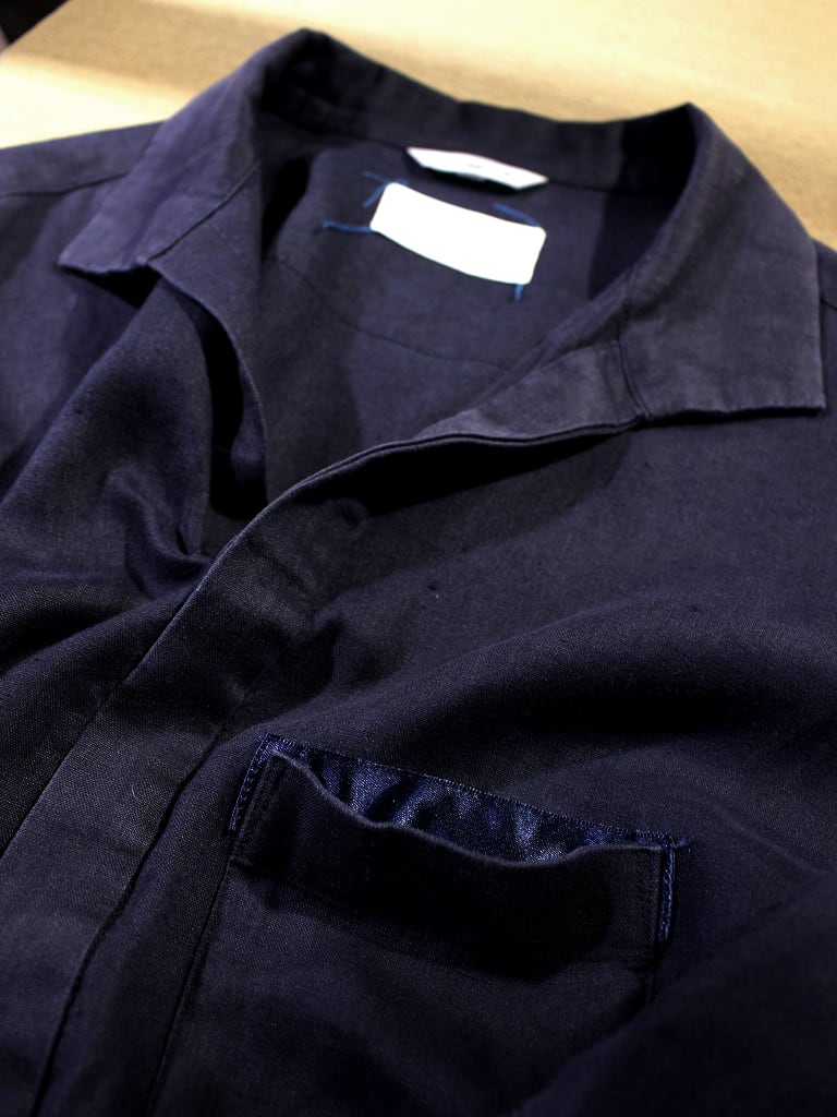 ダークネイビーのベースカラーにグレーの顔料を薄くガーメントダイ加工しました。