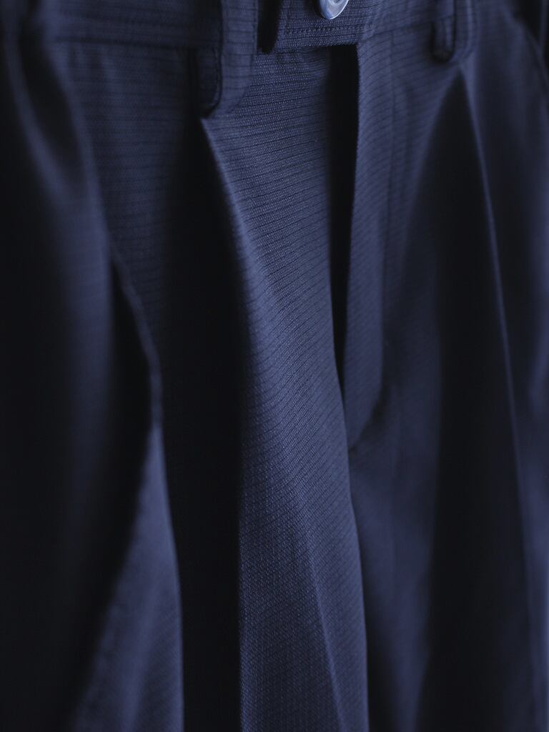 ワンタックのウエストラインから緩やかなテーパードを描く立体フォルムです。