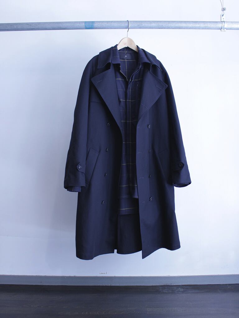 やや重量とドレープのある生地とワイドフォルムに造り、シャツのデザインながらアウターのような存在感があります。