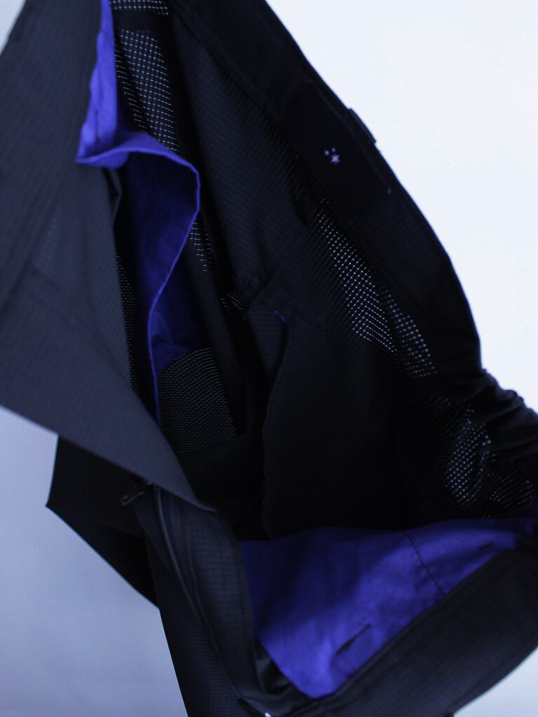 艶消しマットのリップストップ調の変則的な組成は小松マテーレ製の生地です。