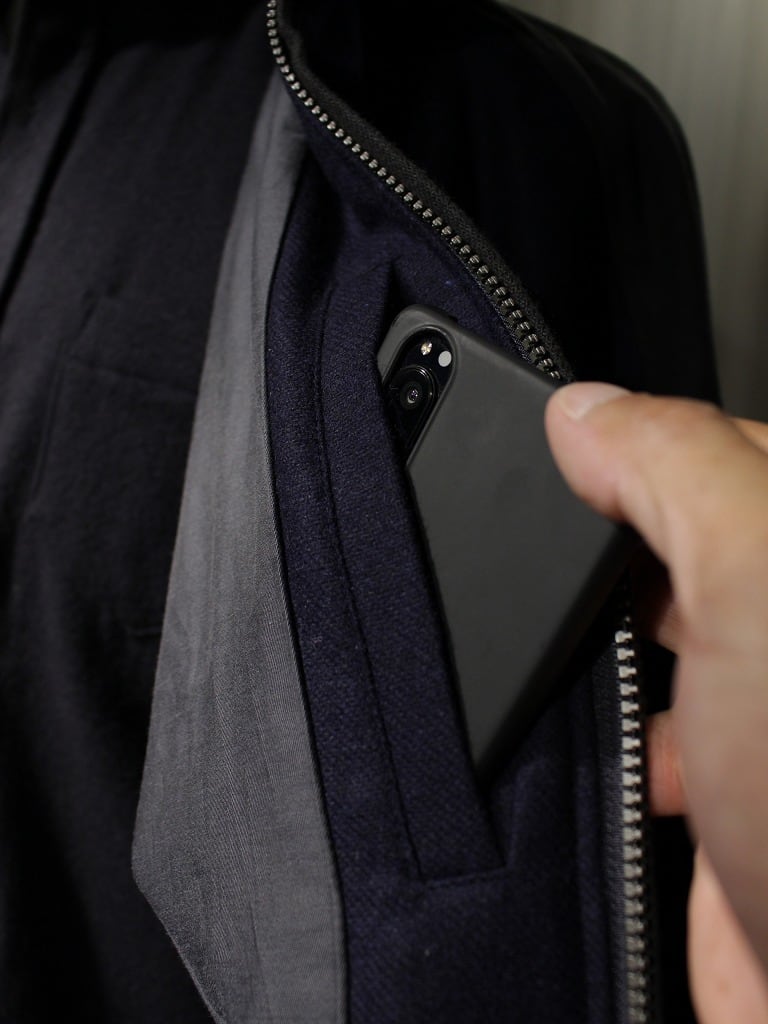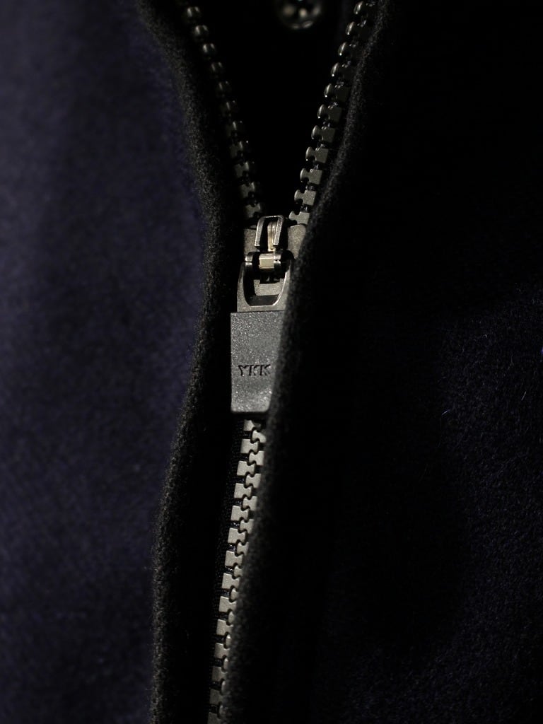 ファスナーはビスロンメタルコーティング版を使用しており、金属のような質感と樹脂の滑らかなタッチです。ファスナーの縁は両玉縁仕様になっており通常ファスナーエレメントは隠れるようになっています。