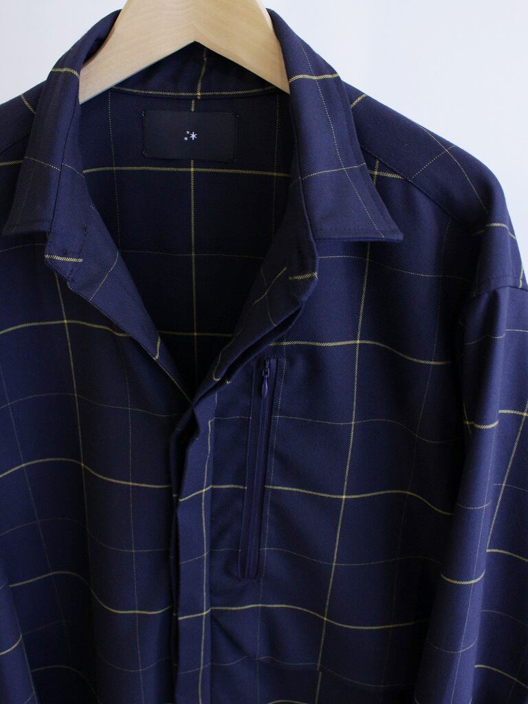 やや重量とドレープのある生地とワイドフォルムに造り、シャツのデザインながらアウターのような存在感があります。