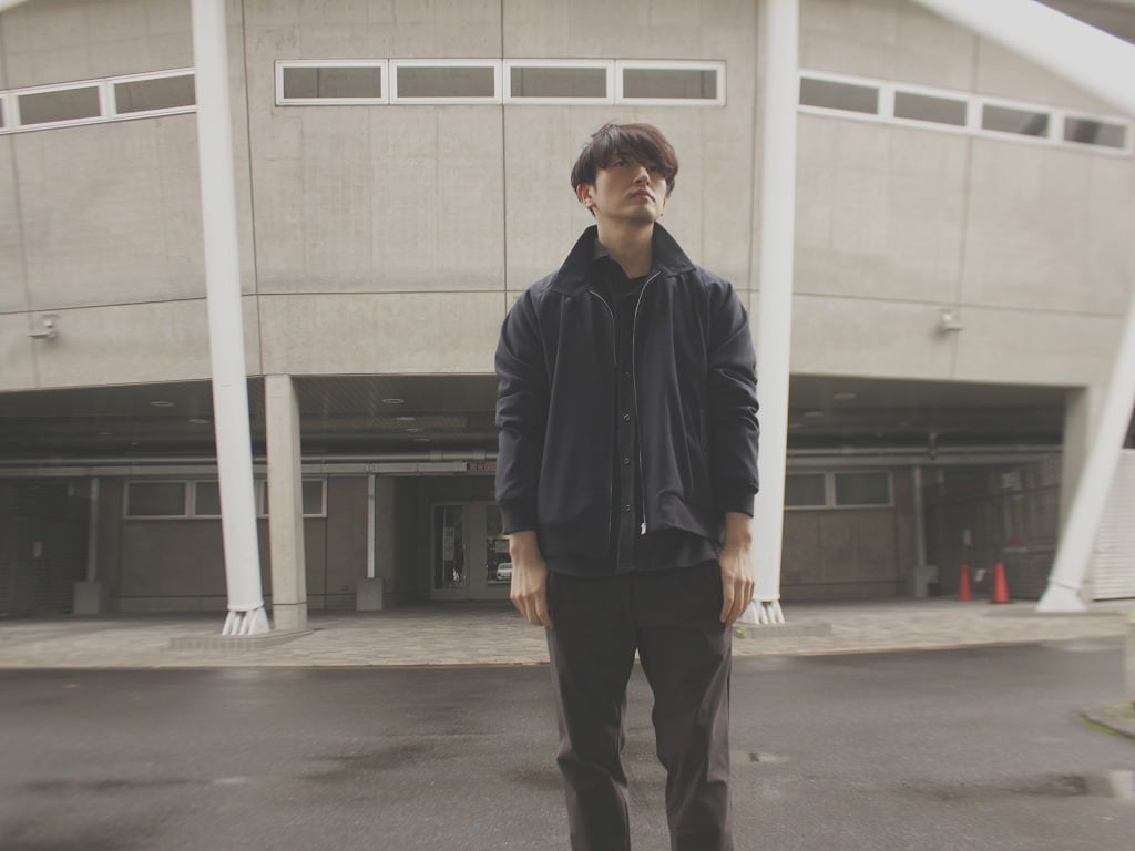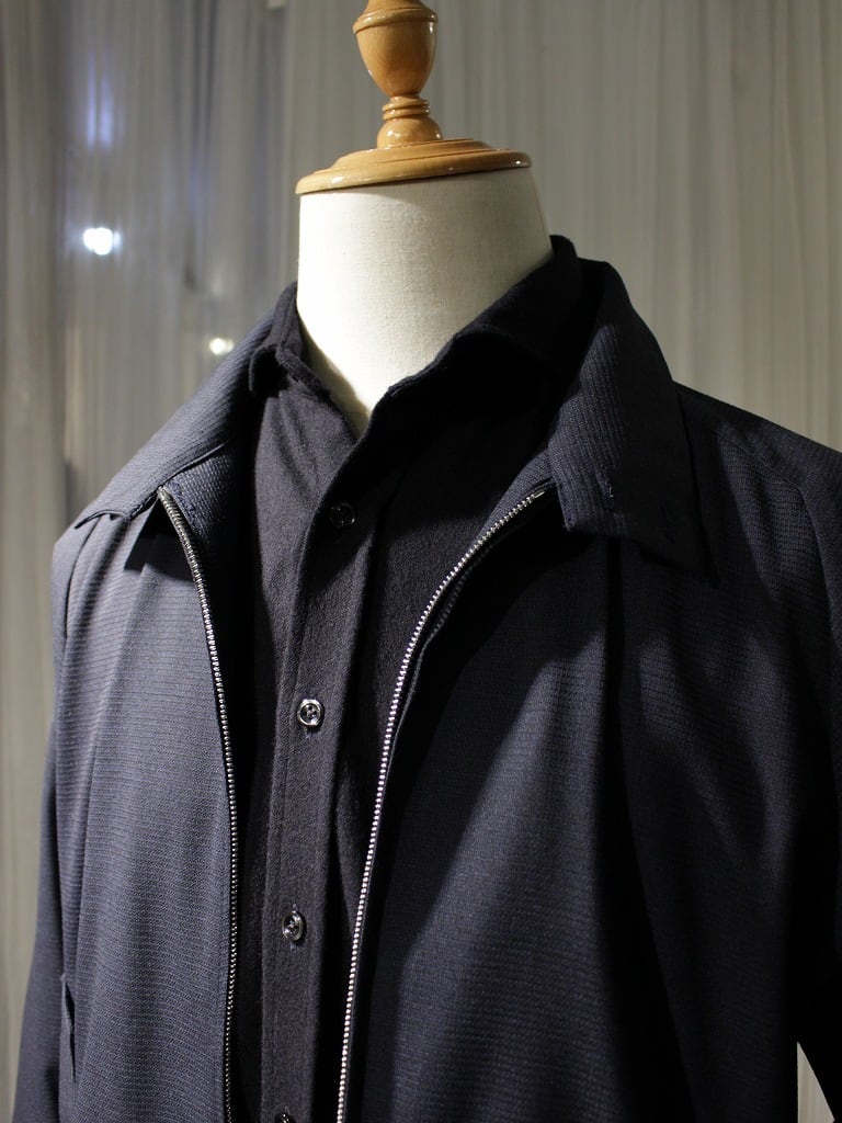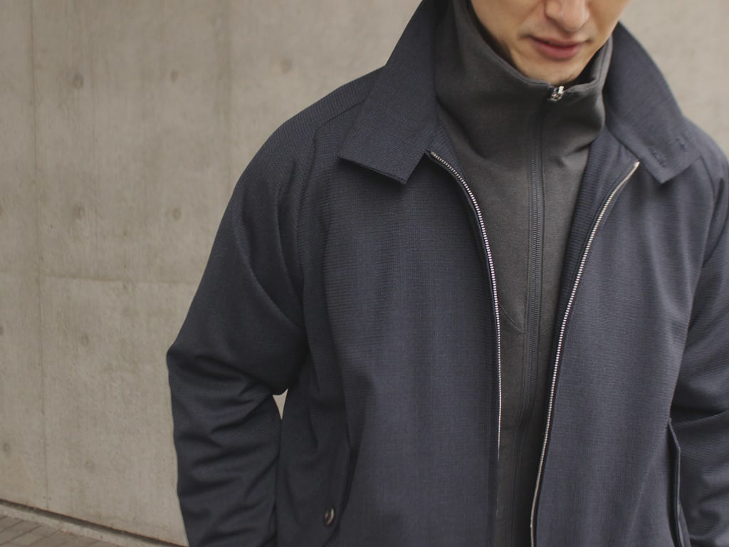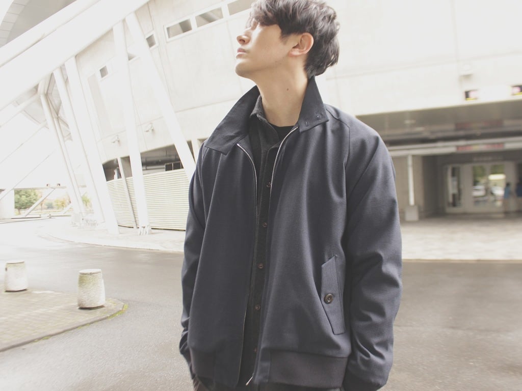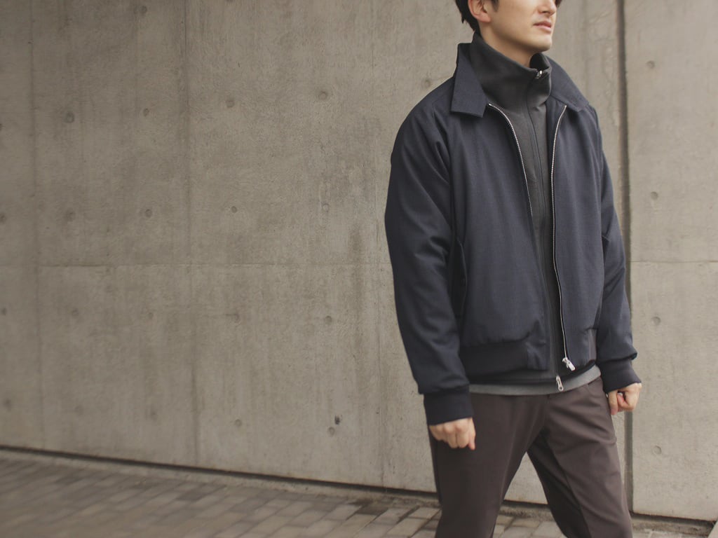 ハリントンジャケットを梳毛(スーツ生地)で仕立てたブルゾン。