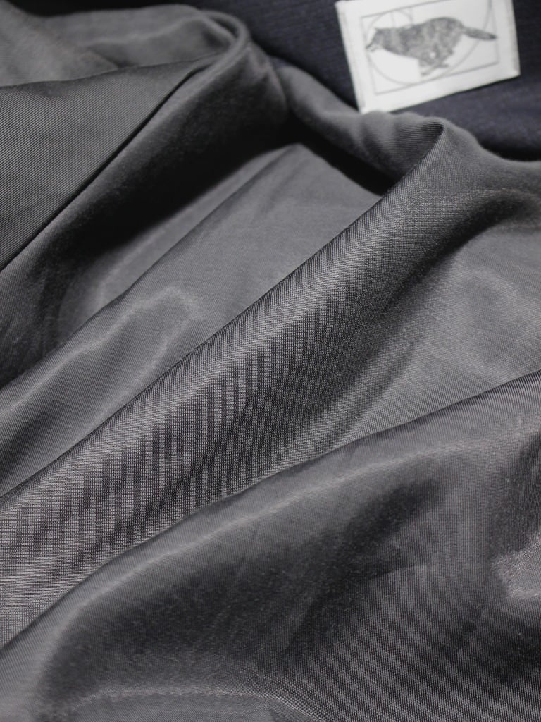 ファスナーの最高峰ホワイトブロンズのエクセラファスナー。キュプラコットン交織ベンベルグライニング。丸胴で無く用尺を要するウールリブなど、流行の影響を受けること無く永く付き合えるトラッドアイテムという事で使用した付属も特に上質なものです。毛芯や接着芯など必要に応じた4種類の芯地を使い分けています。