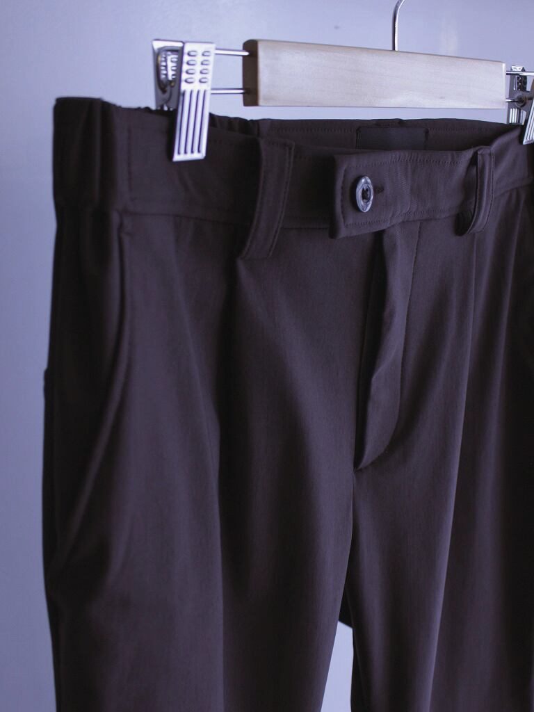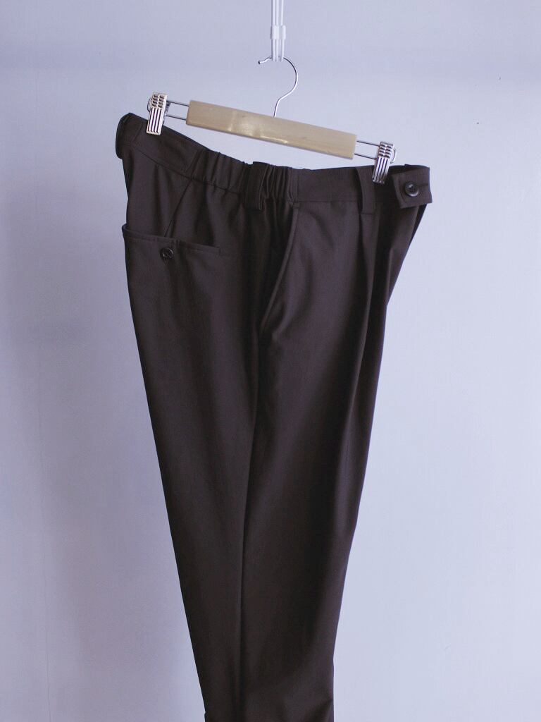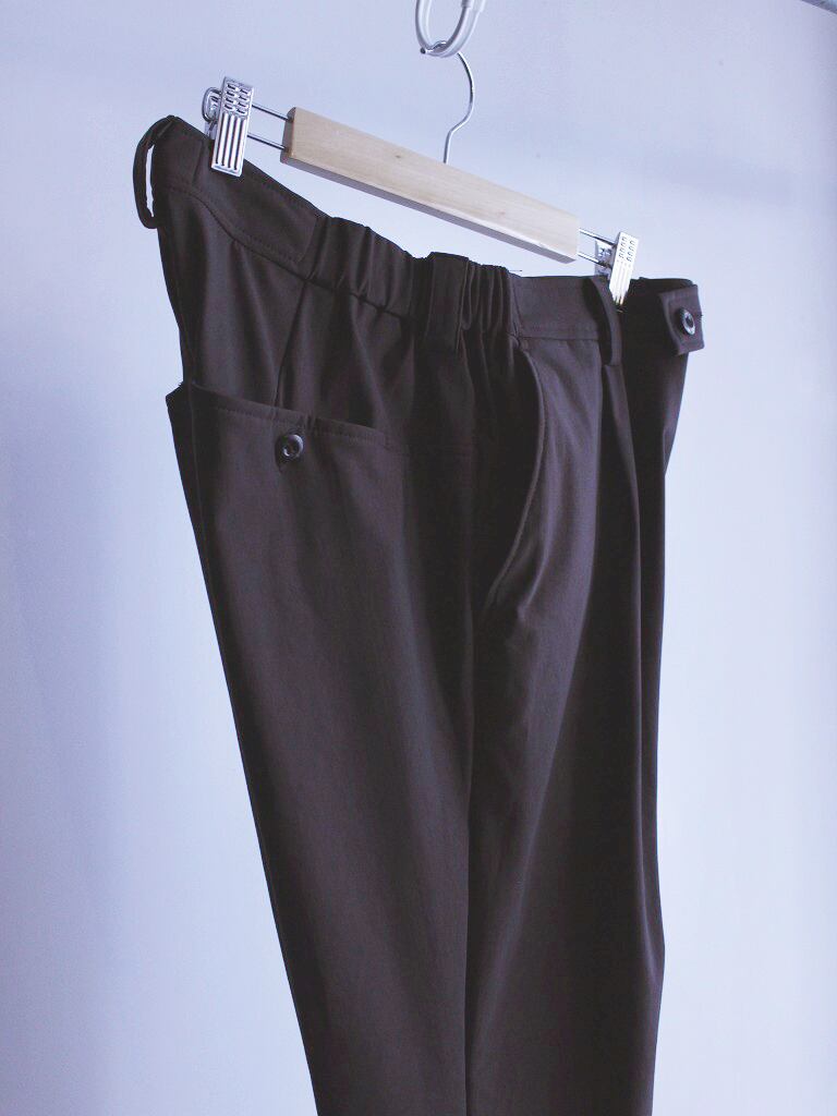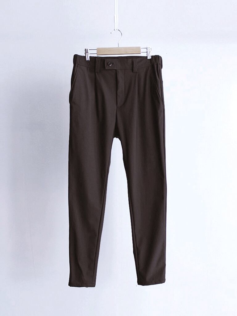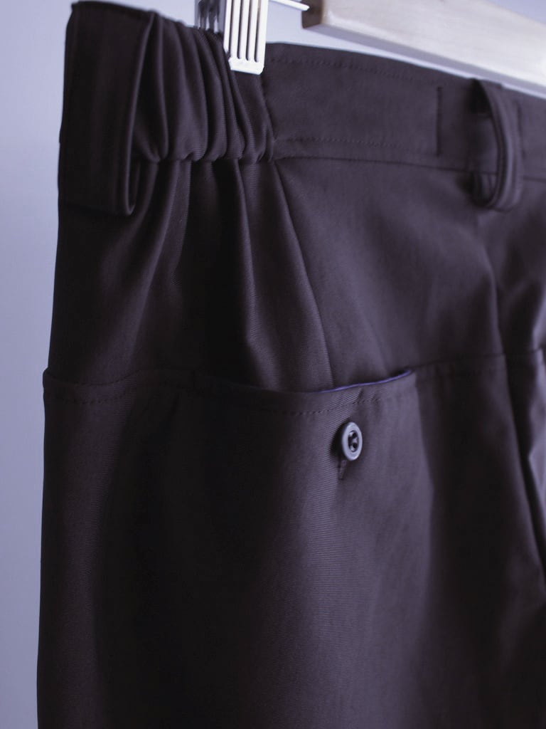 ワンタックのウエストラインから緩やかなテーパードを描く立体フォルムは直近の新規パターンシルエットになります。