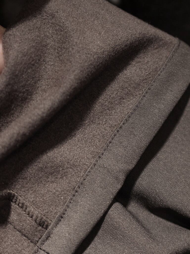 スラックスタイプながら全方向ストレッチのコンフォートさによりスポーツウェアのような楽さ。そしてポリエステル起毛はスエードよりもヌバックに近い高繊細な質感で、非常に滑らかな穿き心地です。