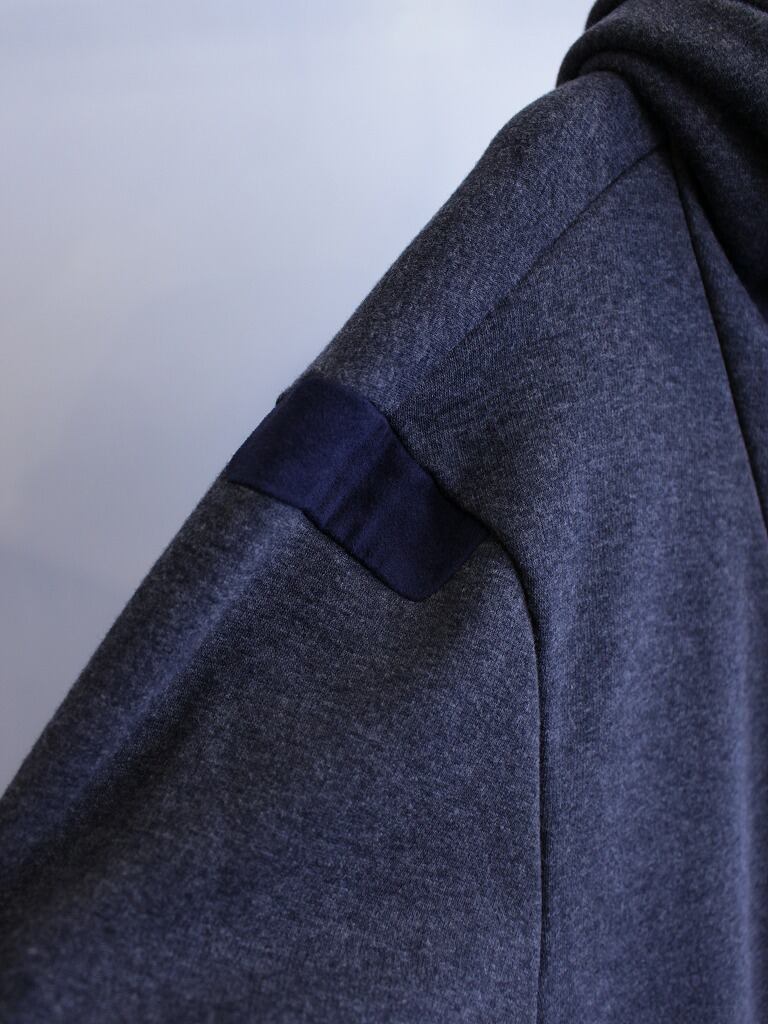 フライフロントの隠れた縫い付けドットボタン仕様で手軽に羽織れます。