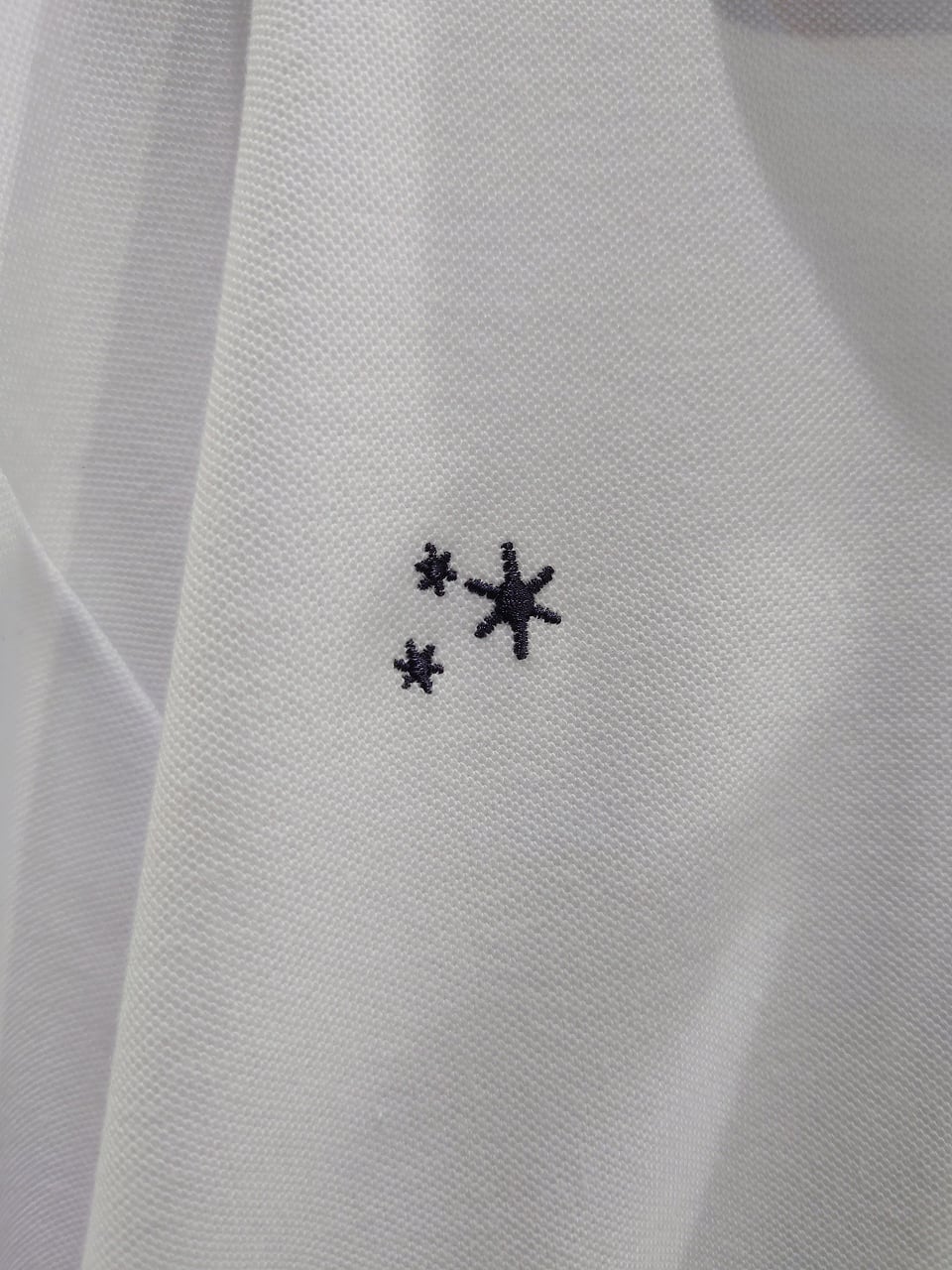 ネイビー糸のTRESSTELLAEワンポイント刺繍。