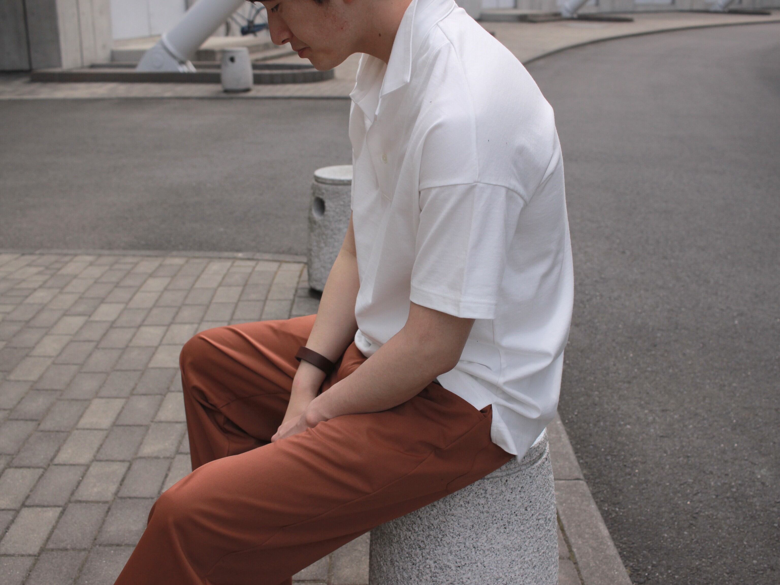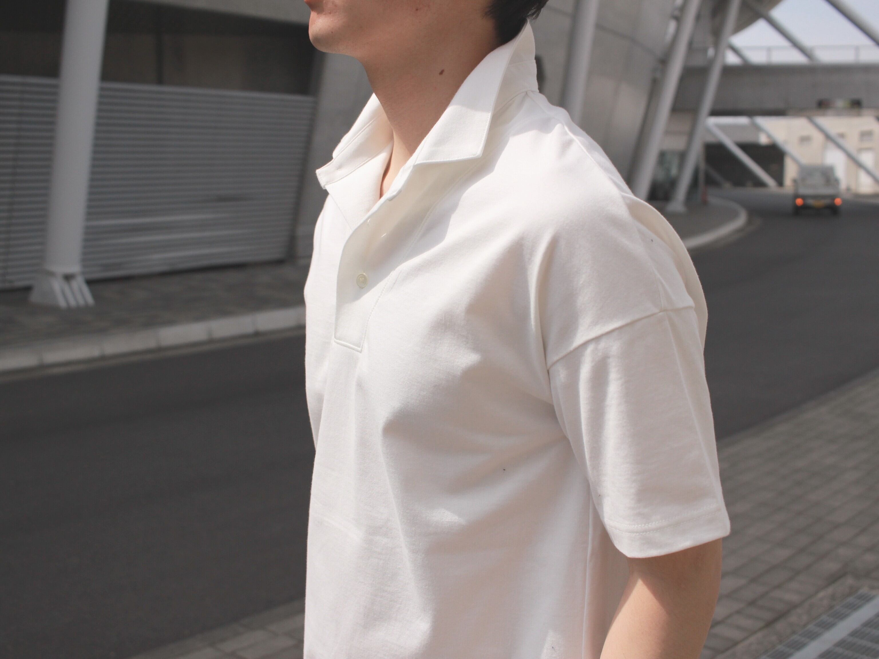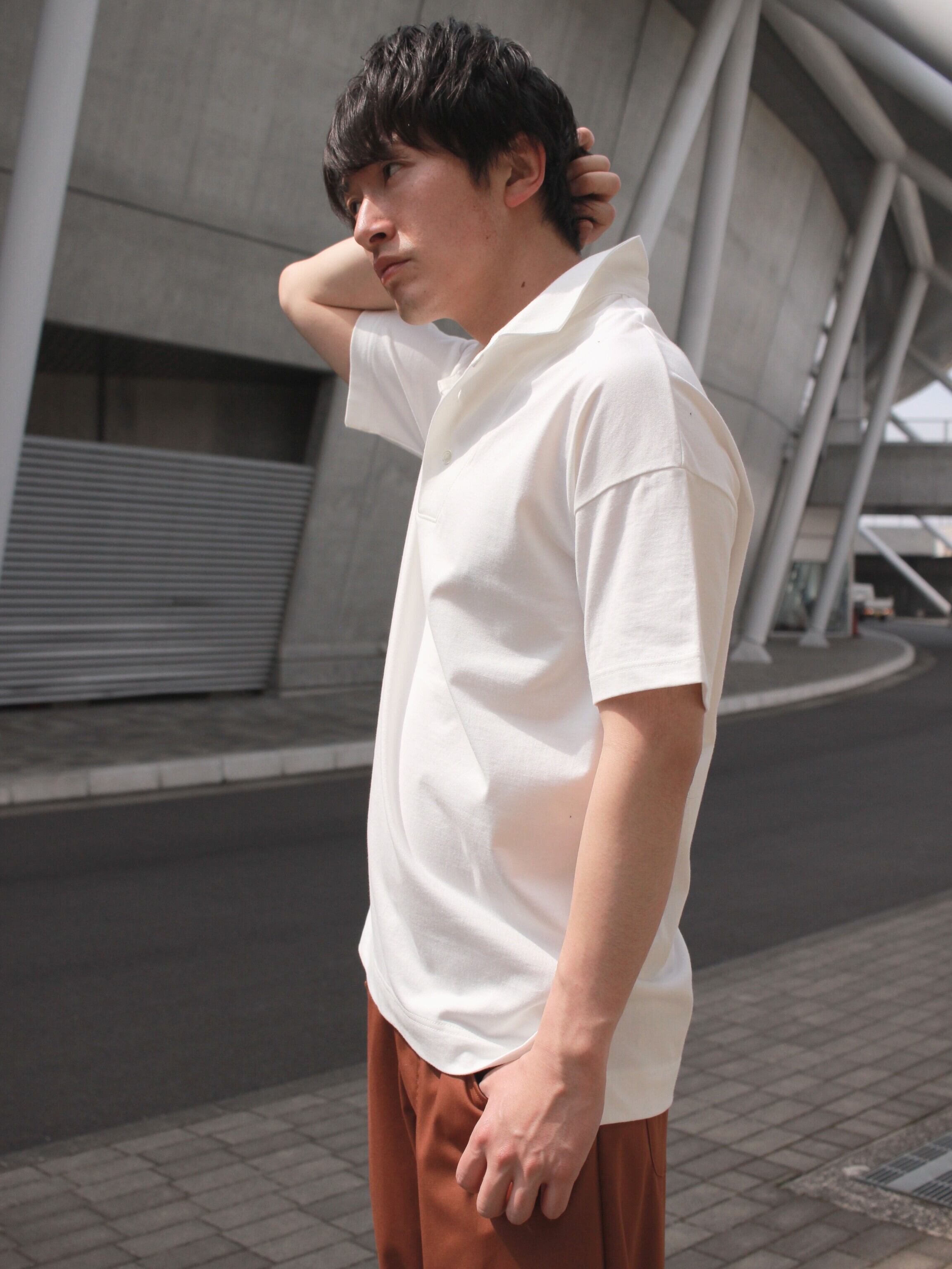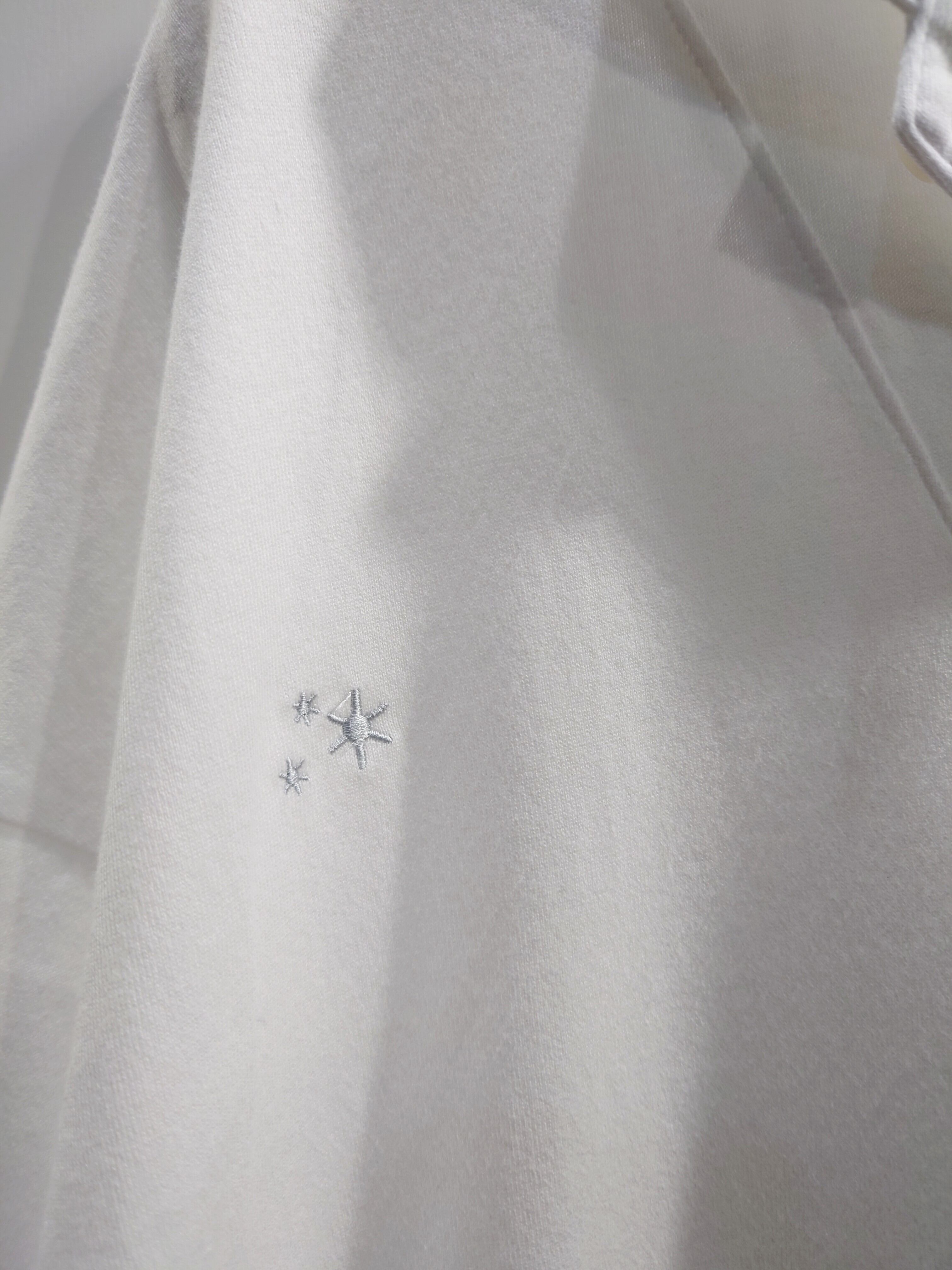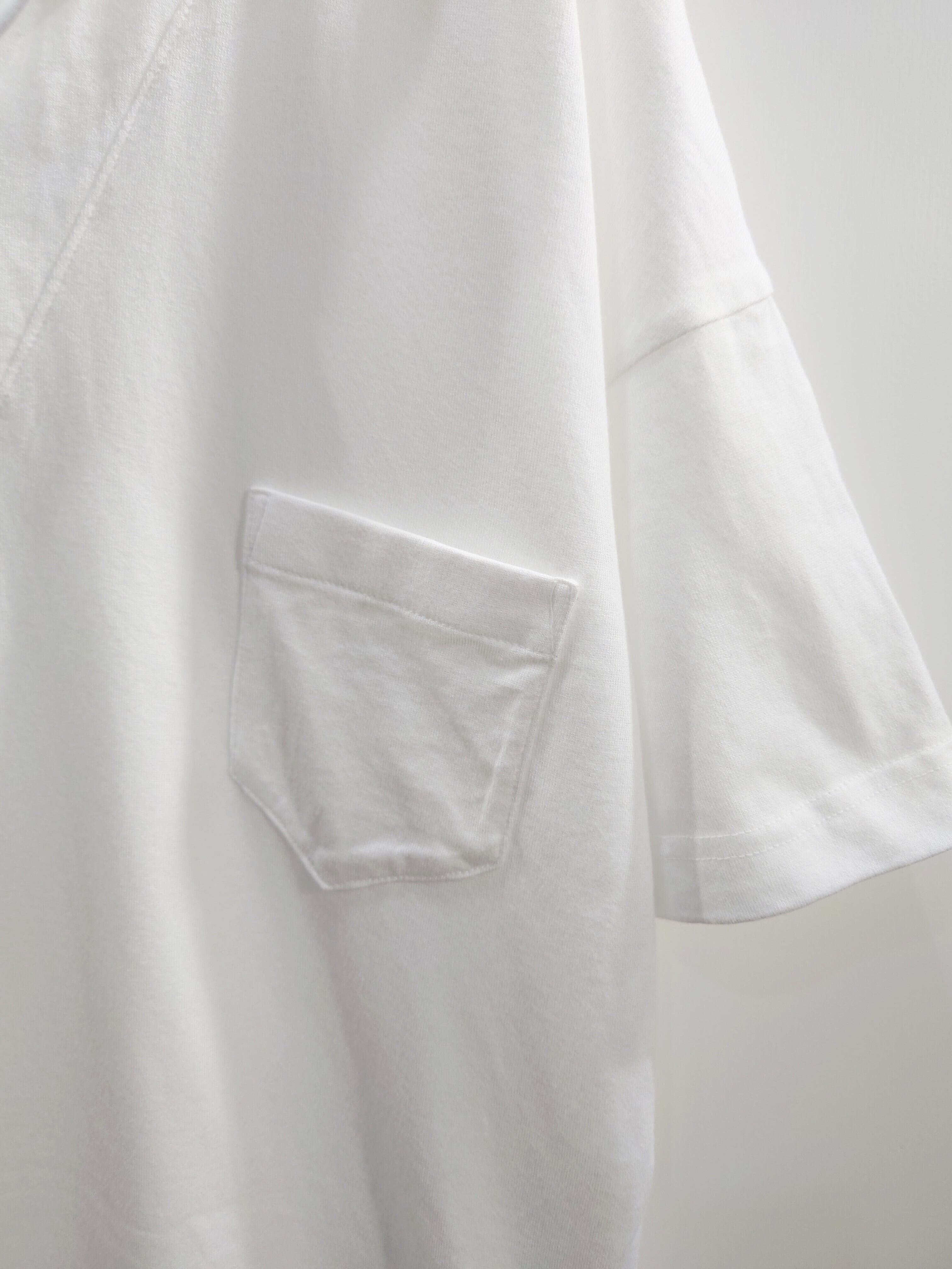 リラックスしたドロップショルダーのプルオーバーポケットシャツ。ソフト天竺を使用しています。シンプルながらプルオーバーシャツ、ポロシャツ、スキッパー、のどれでもない立ち位置のウェアです。3釦仕様。トレスステッラの刺繍。