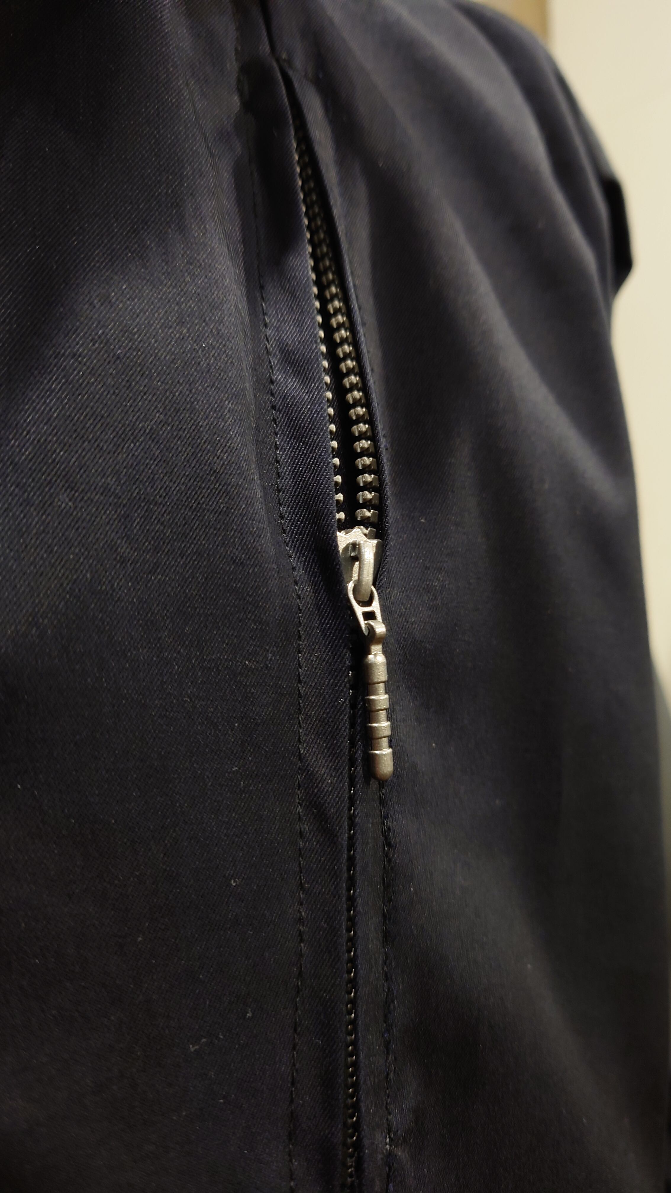 ファスナーはオーダーメイドのビスロンメタルコーティングを使用しています。金属のような質感と樹脂の滑らかなタッチです。