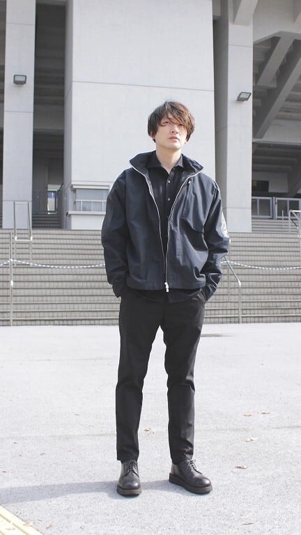 トラックジャケットをモチーフにしたアクティビティーなフォルムデザインのワイドジャケット。