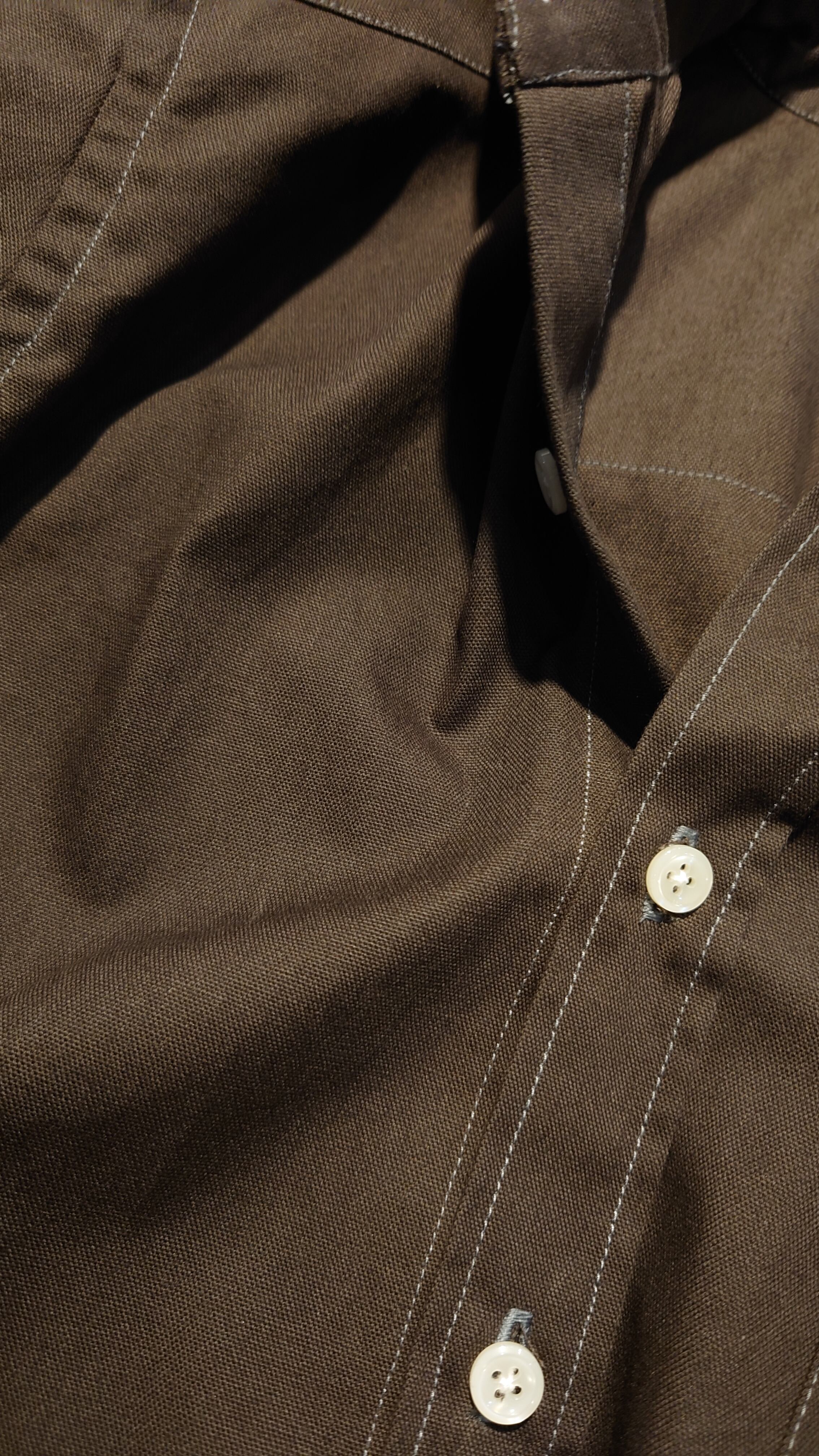 ミリタリー感のあるピグメントのビンテージオックスフォード生地を使用したカッタウエイ型アウターシャツ。陰影のある特有のハリ感があり、洗いざらしでご着用頂けます。シャツとしてもアウターとしても使える高い汎用性が特徴です。ボタンを手付けしております。