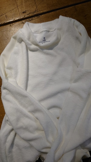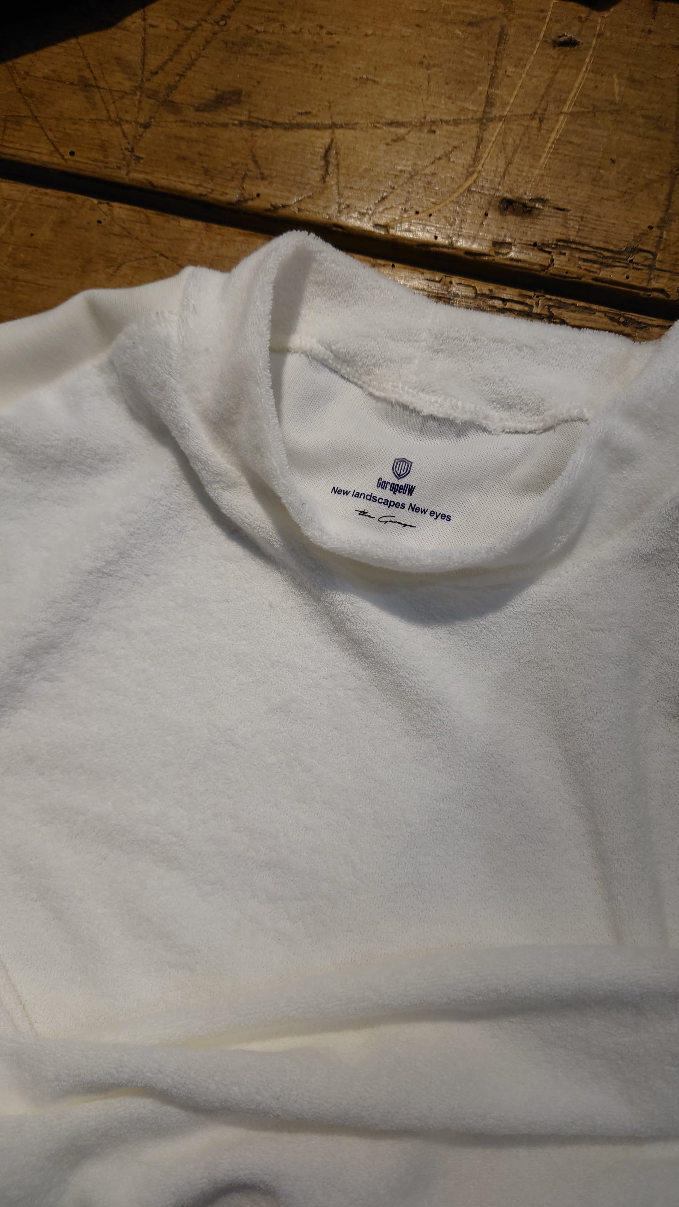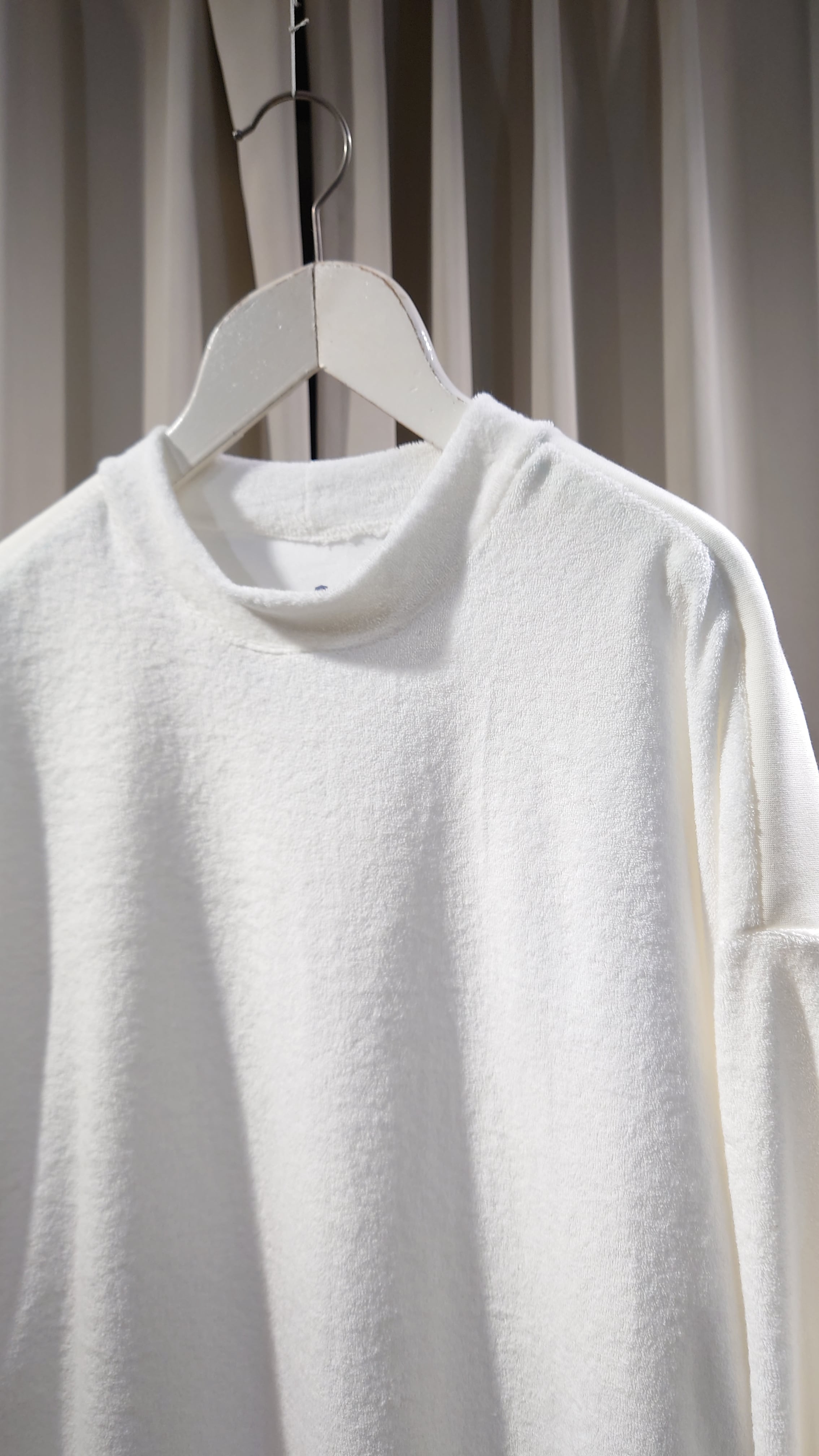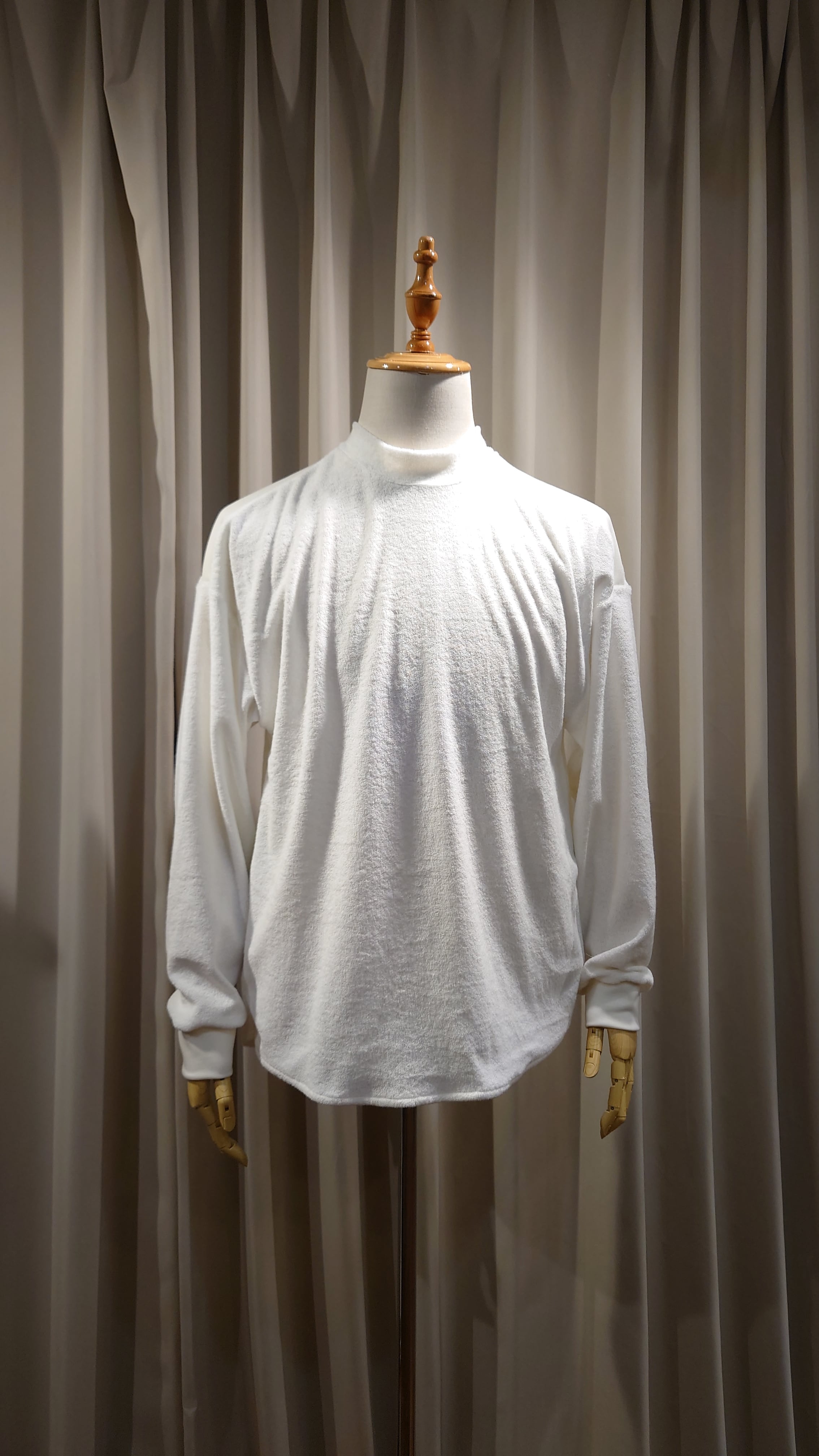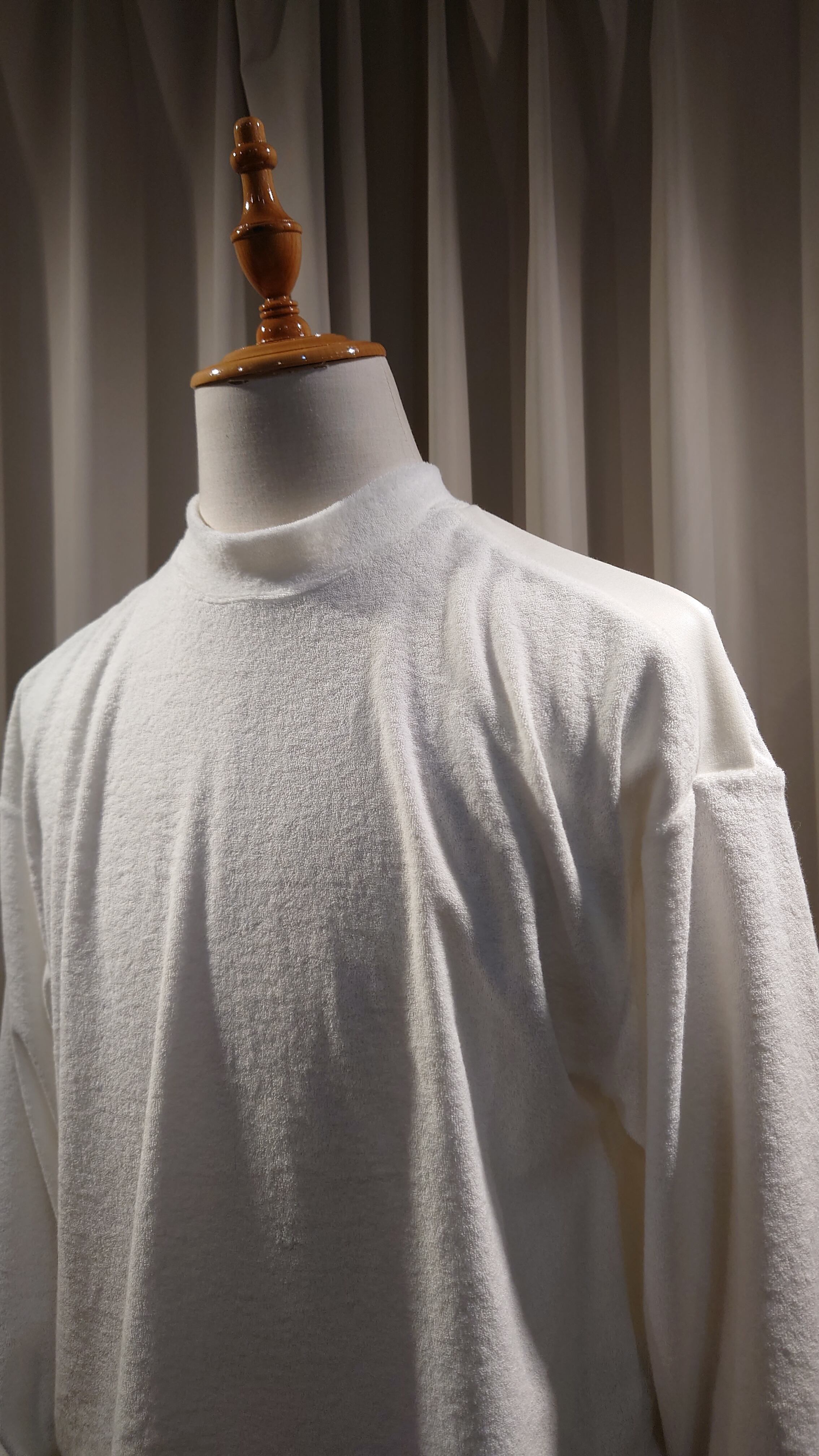 スウェットやロングスリーブTEEよりもハイゲージニットに近いフォルムにデザインしています。その為、単独での着用はもちろんジャケットのインナーなどにもお勧めです。