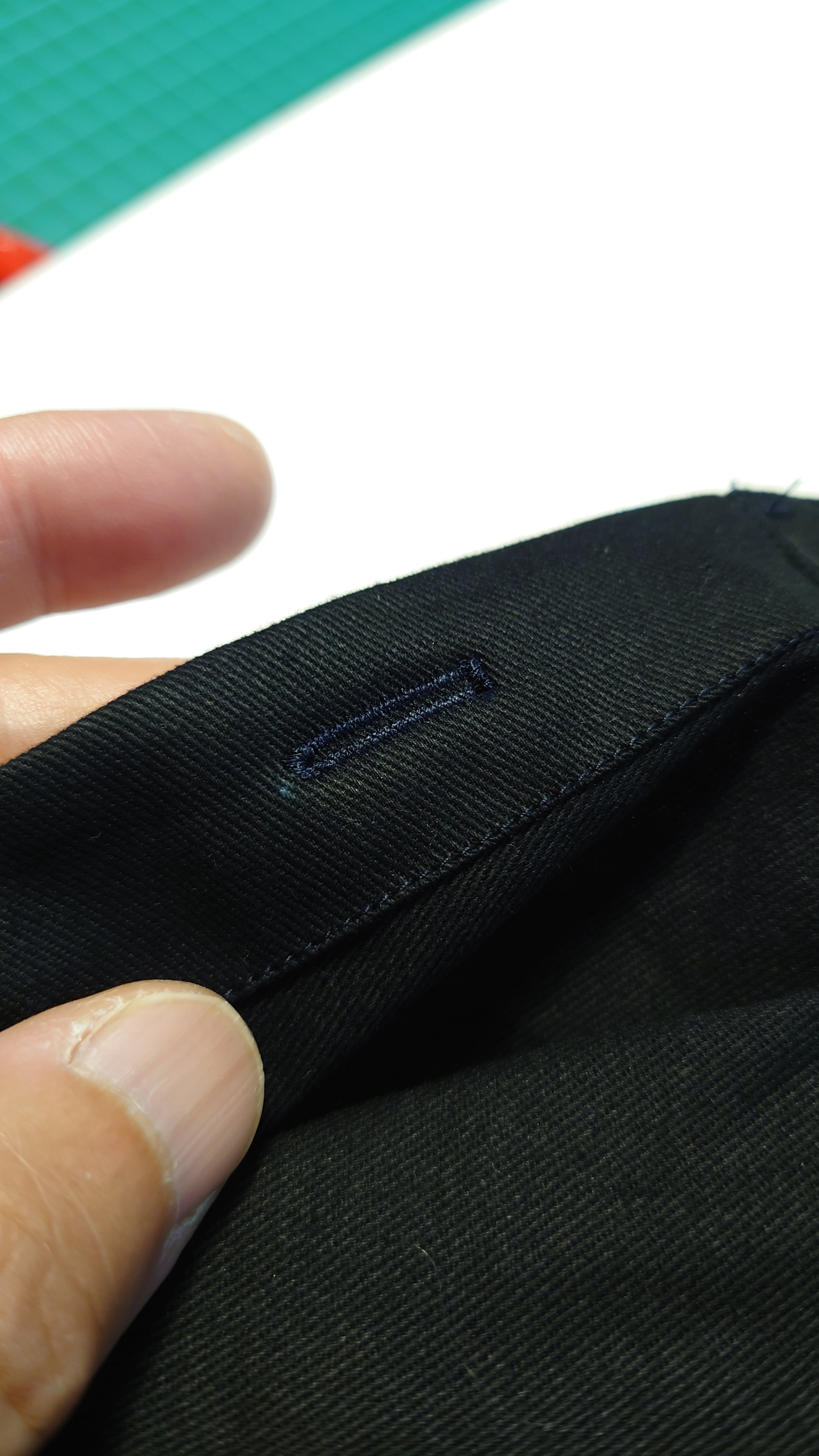 前立を内側に折り込んでフレンチフロントのように見えるデザインアレンジをしております。ポケットもガゼットも無いシンプルな仕様です。