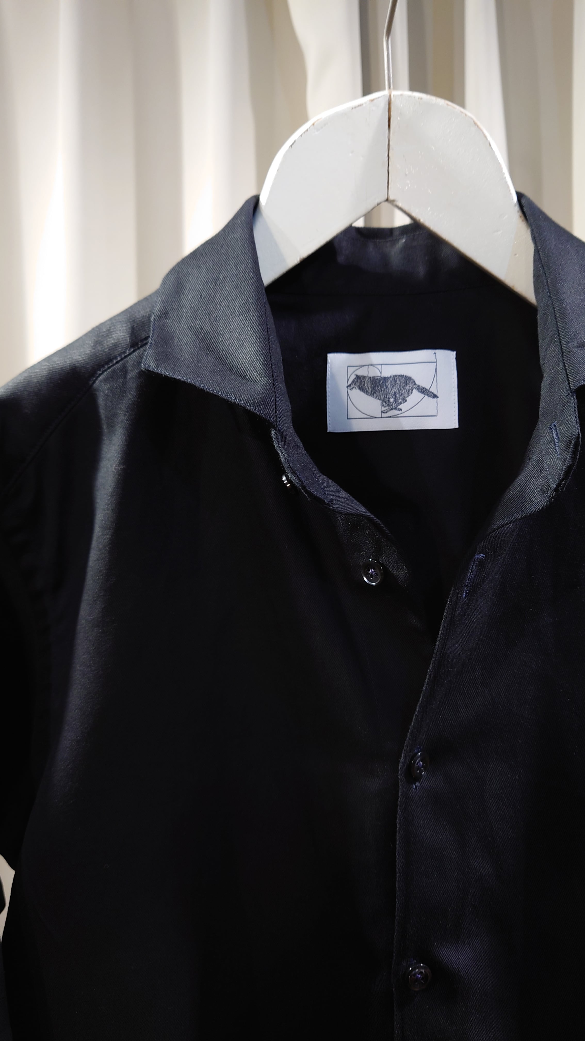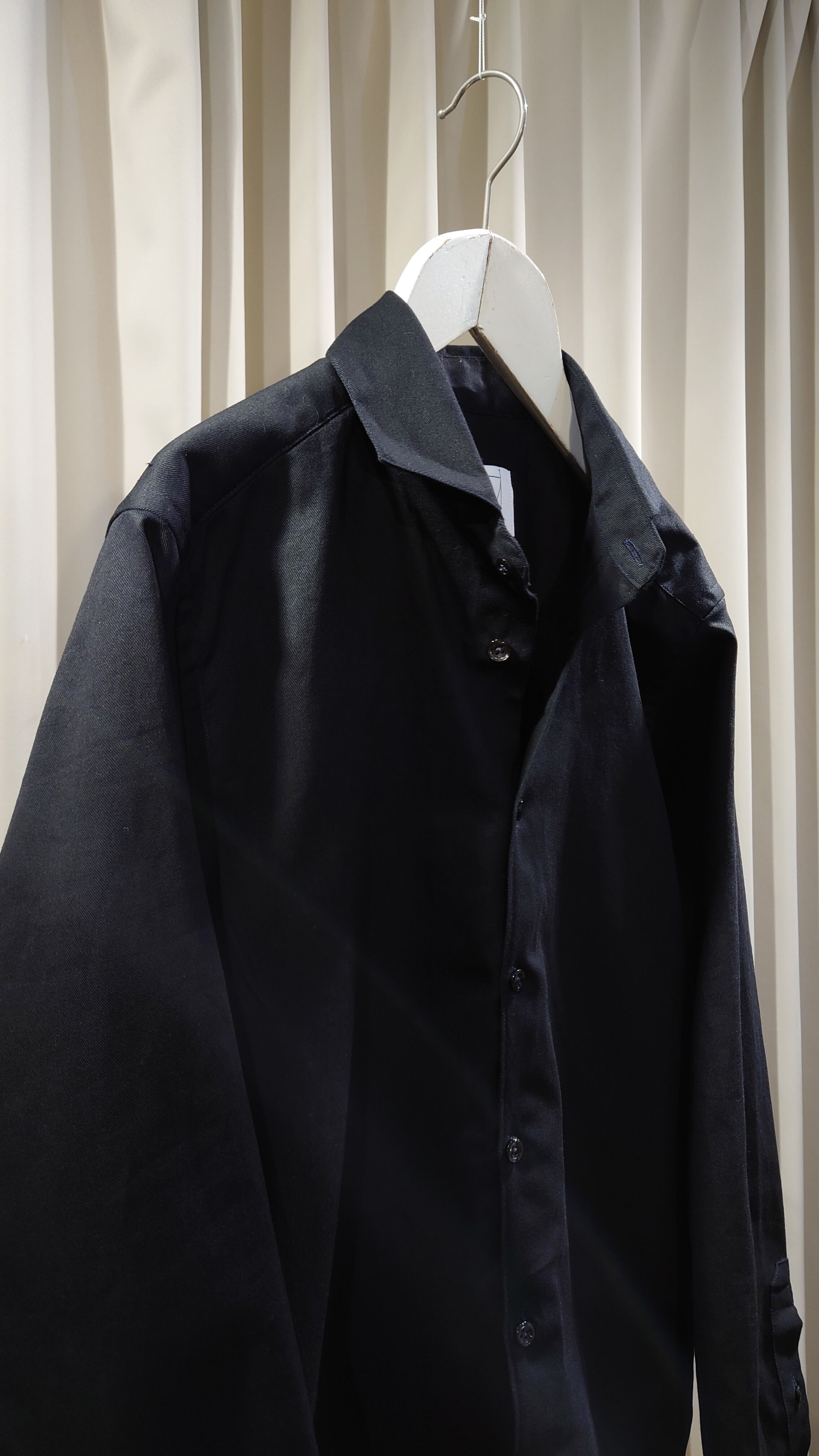 Garage.U.W ATELIER MADE CUTAWAY INNER SHIRT BLACK SOFT TWILL NAVY Stitch size46