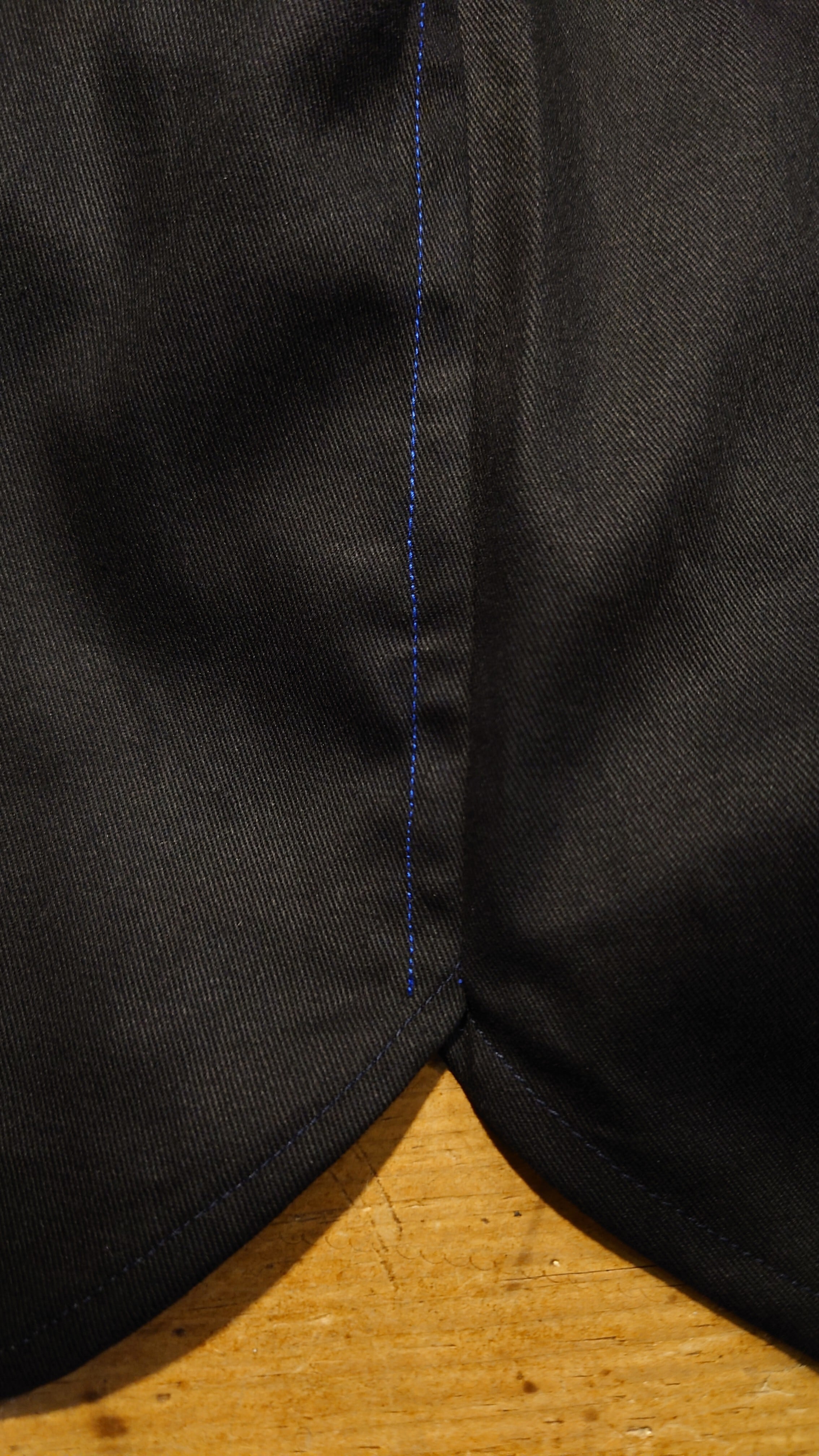 内側の袖から脇にかけてブルーーのステッチでポイントを入れております。